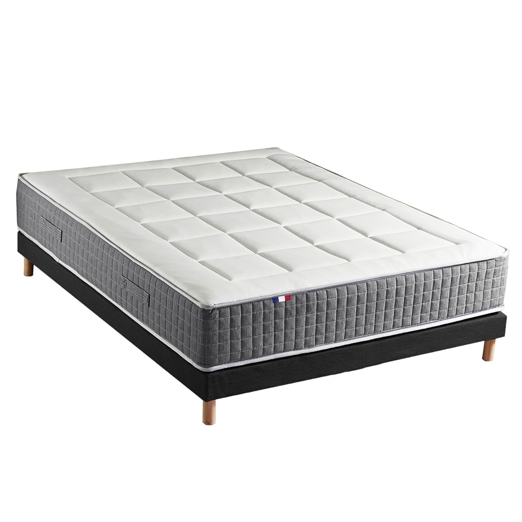 Ensemble Matelas Ressort 7 zones H.28cm + Sommier Fabriqué en France MAX - 140 x 190 cm, Sommier - Noir