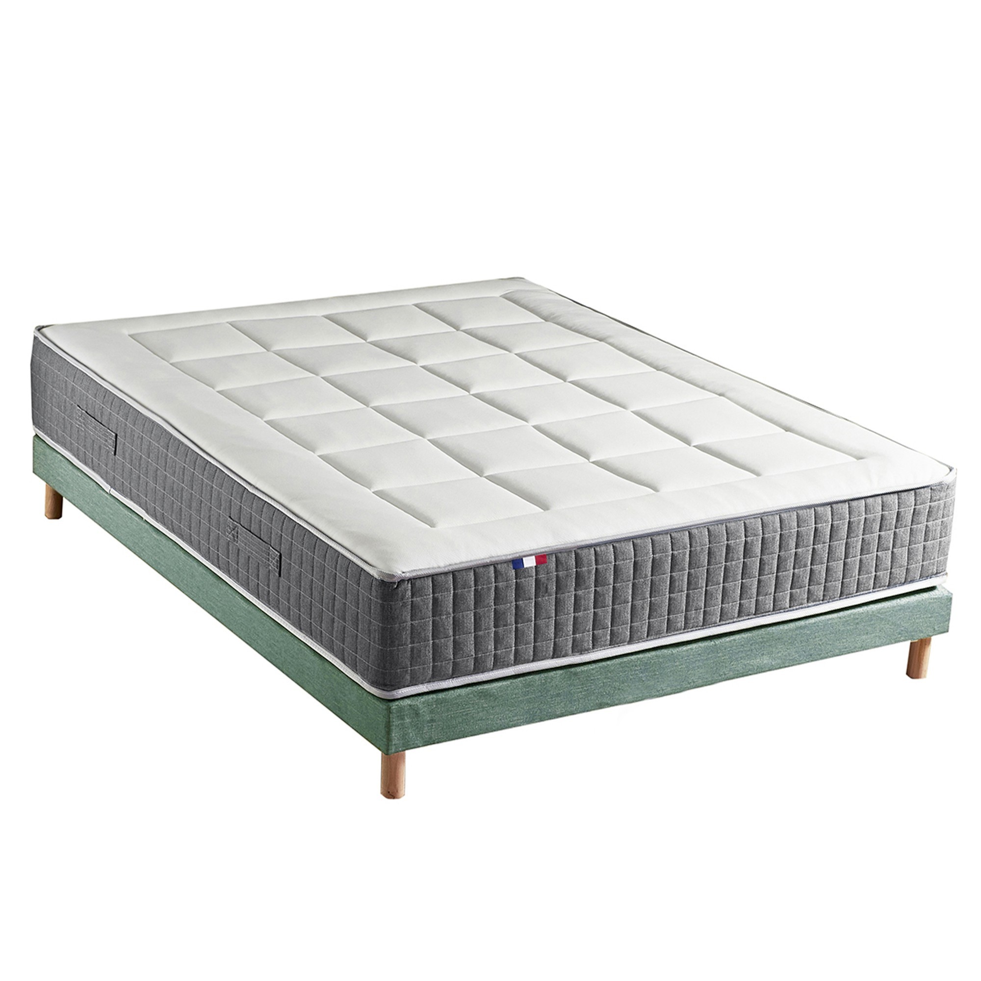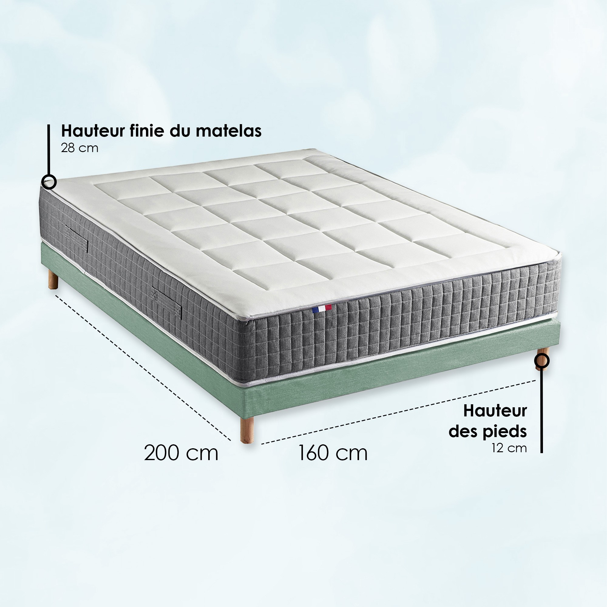 Ensemble Matelas Ressort 7 zones H.28cm + Sommier Fabriqué en France MAX - 160 x 200 cm, Sommier - Vert c