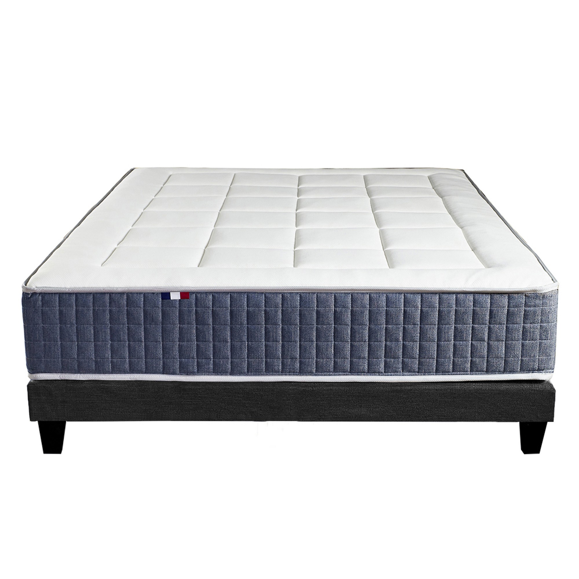 Ensemble Matelas Ressort 7 zones + Mémoire de forme + Sommier KING STYLE + couette + oreillers - Fabriqué