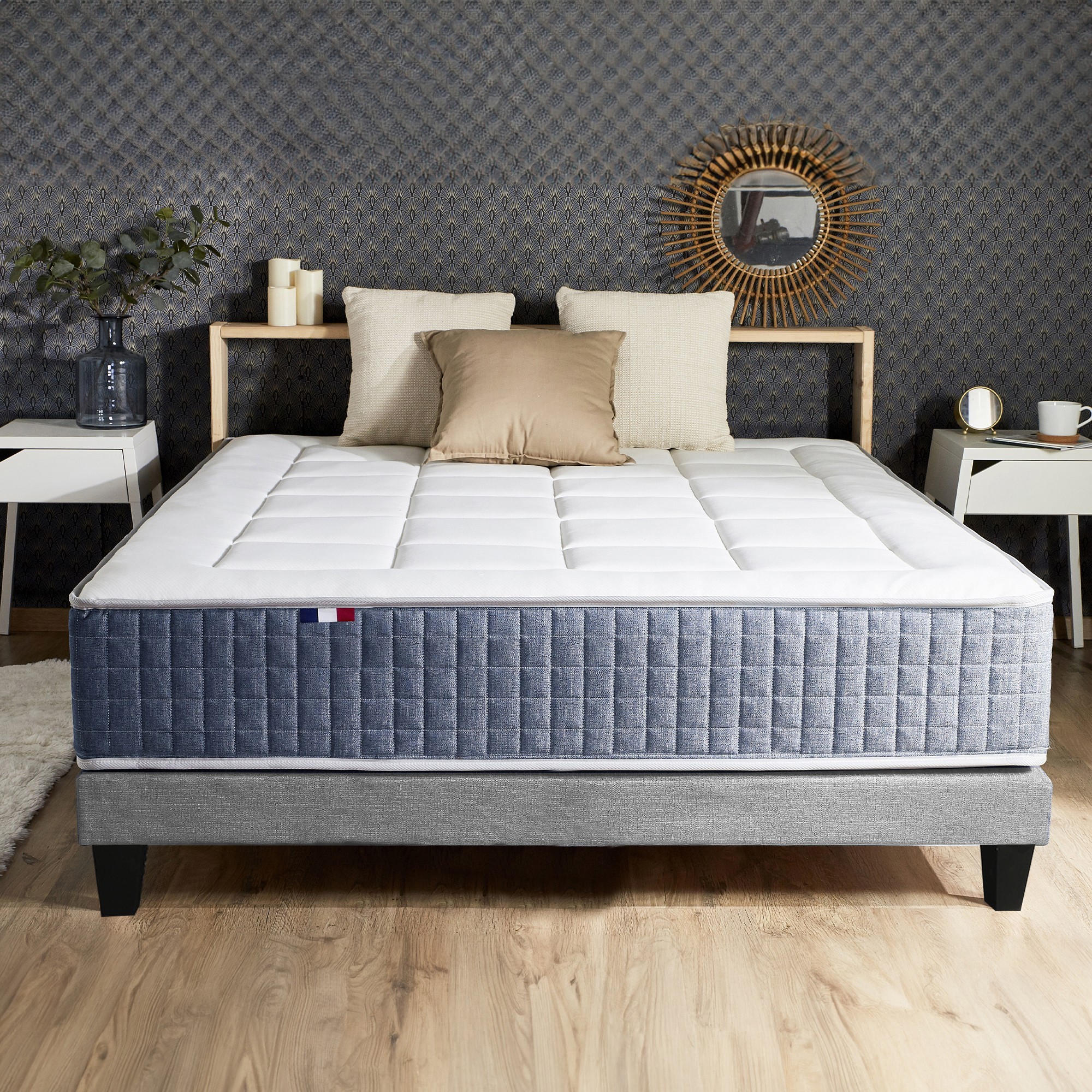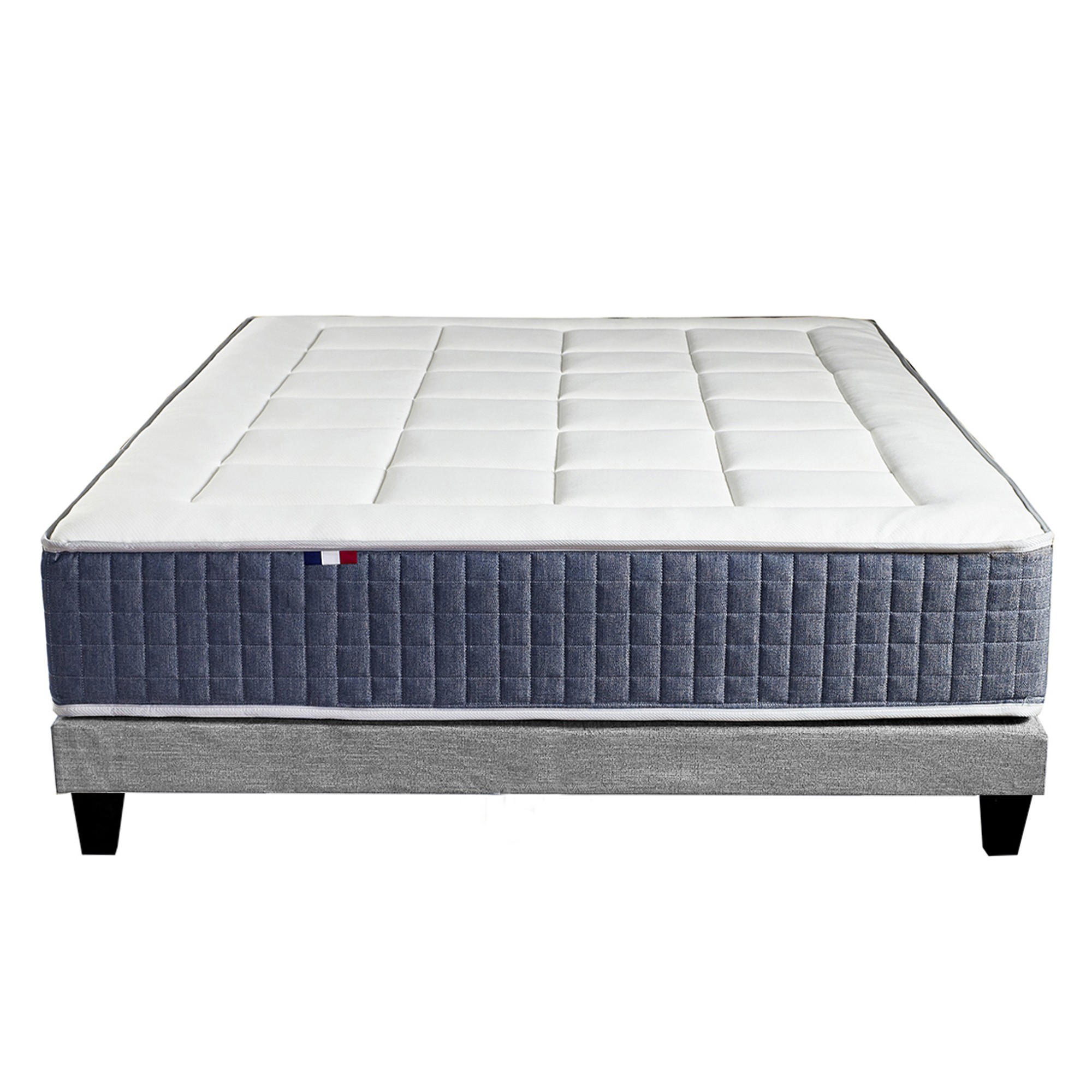 Ensemble Matelas Ressort 7 zones + Mémoire de forme + Sommier KING STYLE + couette + oreillers - Fabriqué