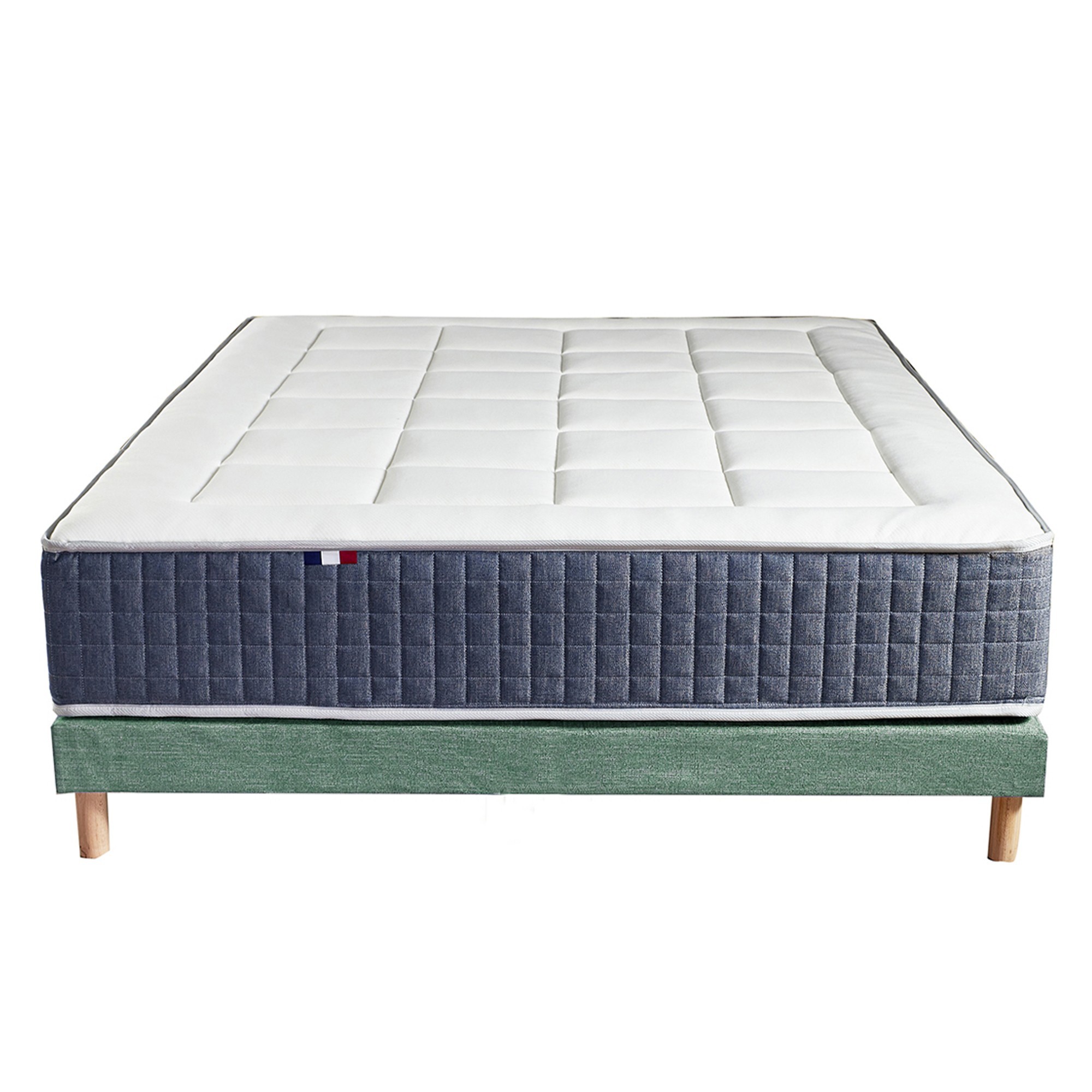 Ensemble Matelas Ressort 7 zones + Mémoire de forme + Sommier KING STYLE Fabriqué en France - 140 x 190 c