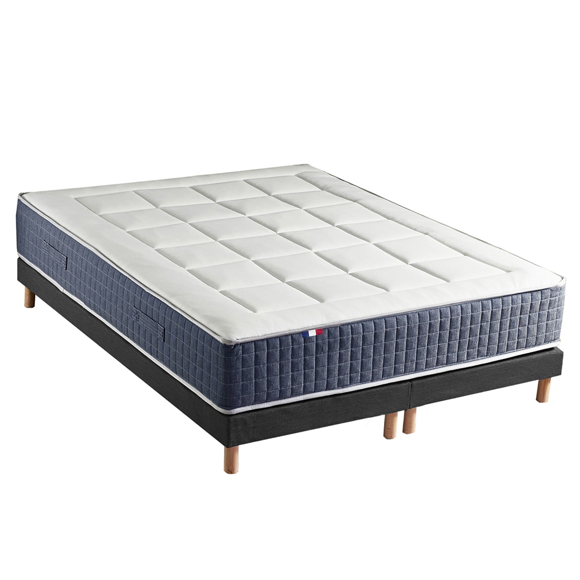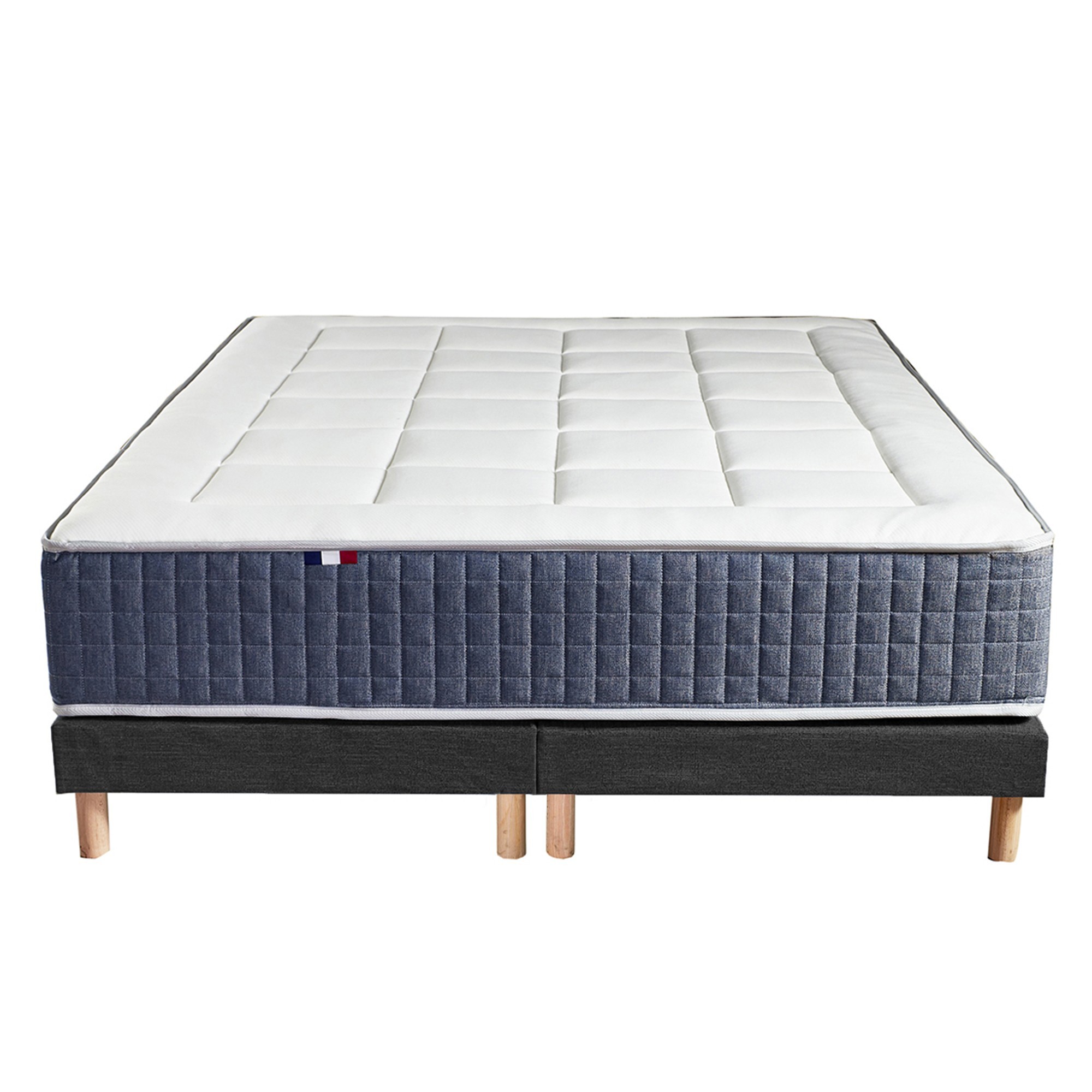 Ensemble Matelas Ressort 7 zones + Mémoire de forme + Sommier KING STYLE Fabriqué en France - 2x90 x 200