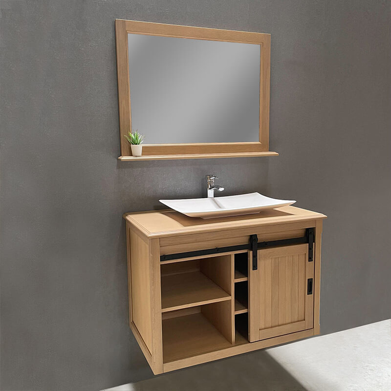 Ensemble meuble salle de bain 93 cm en chêne blanchi et son miroir tablette - Authentica