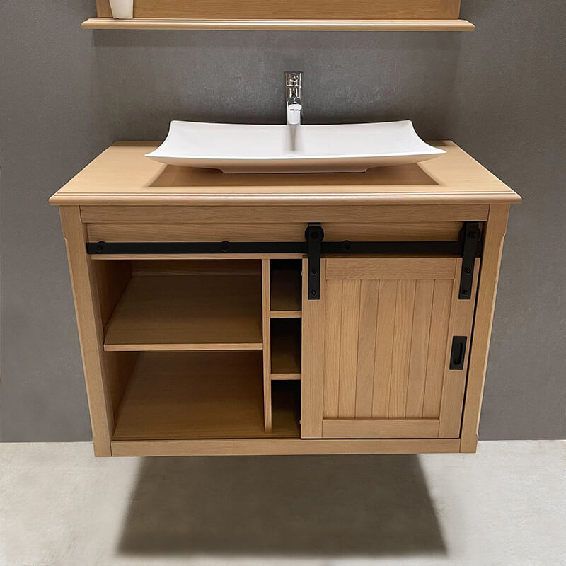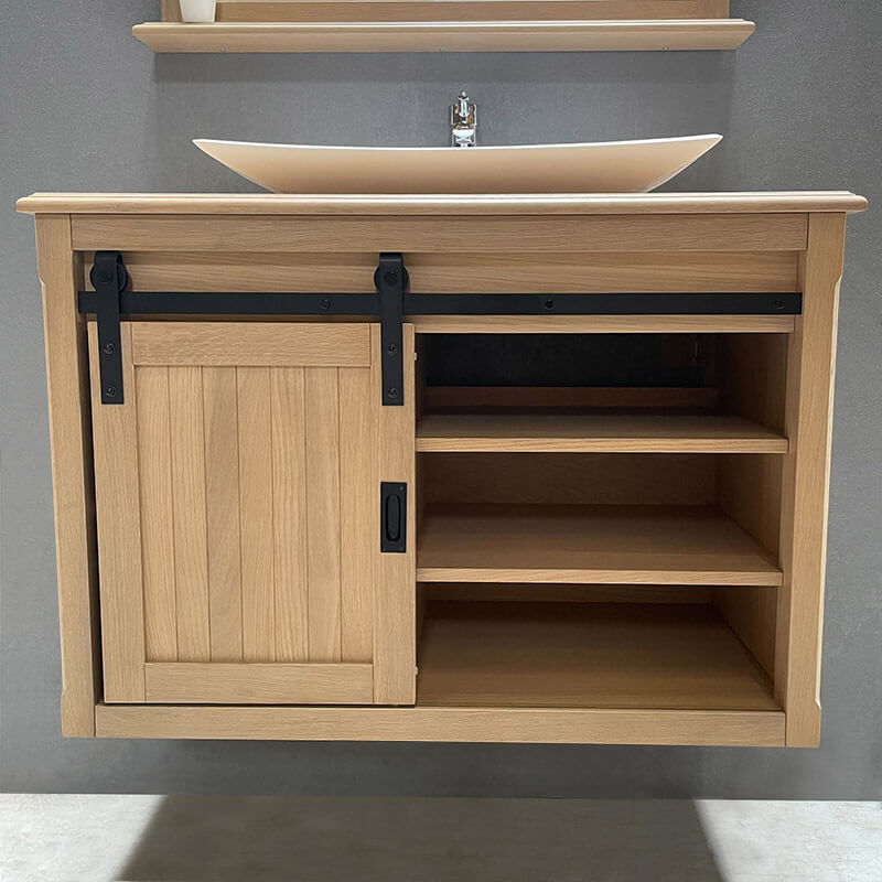 | Libellé | Ensemble meuble salle de bain 93 cm en chêne blanchi et son miroir tablette - Authentica |
