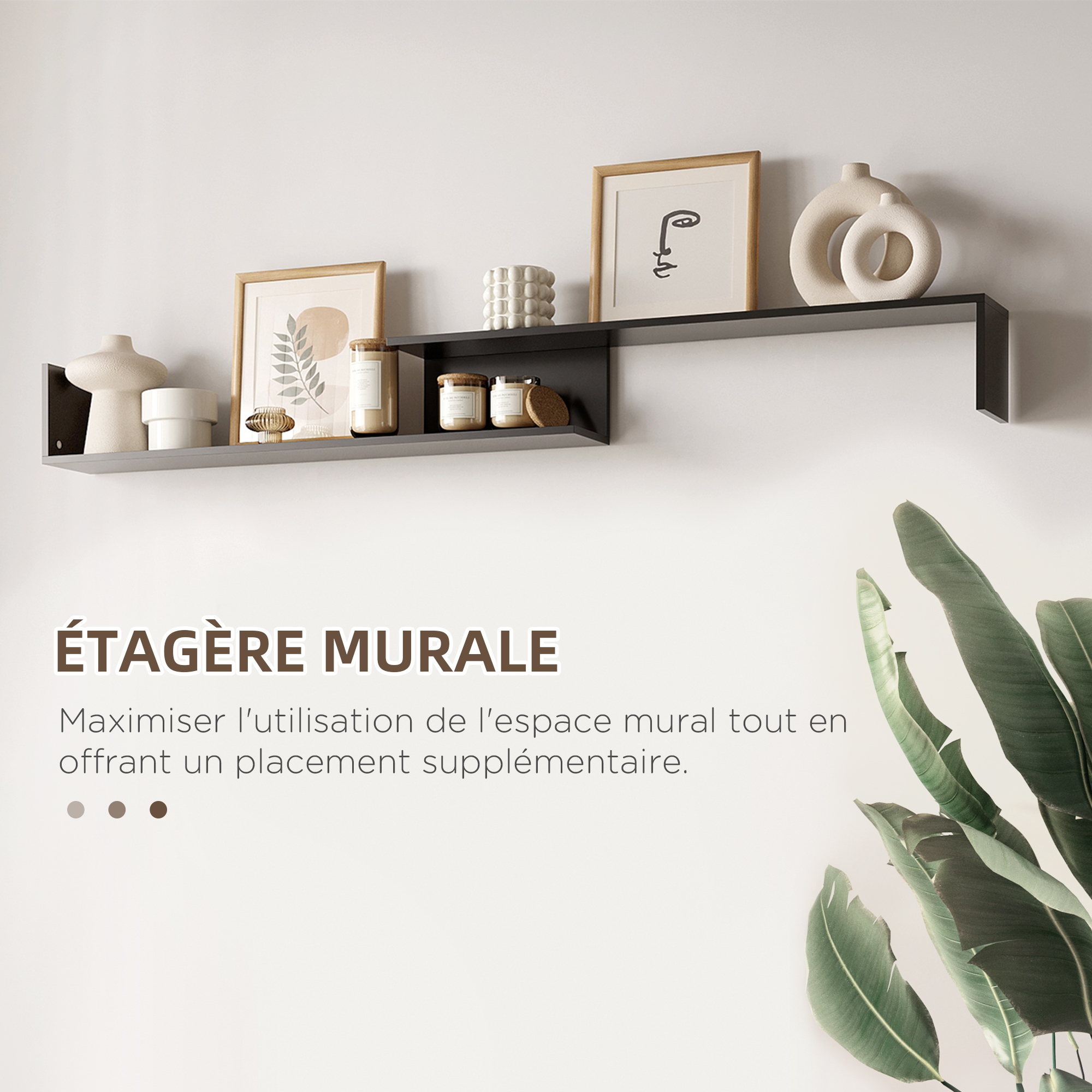 - Espace gauche de l'étagère murale : 88,5I x 13P x 13,3H cm
