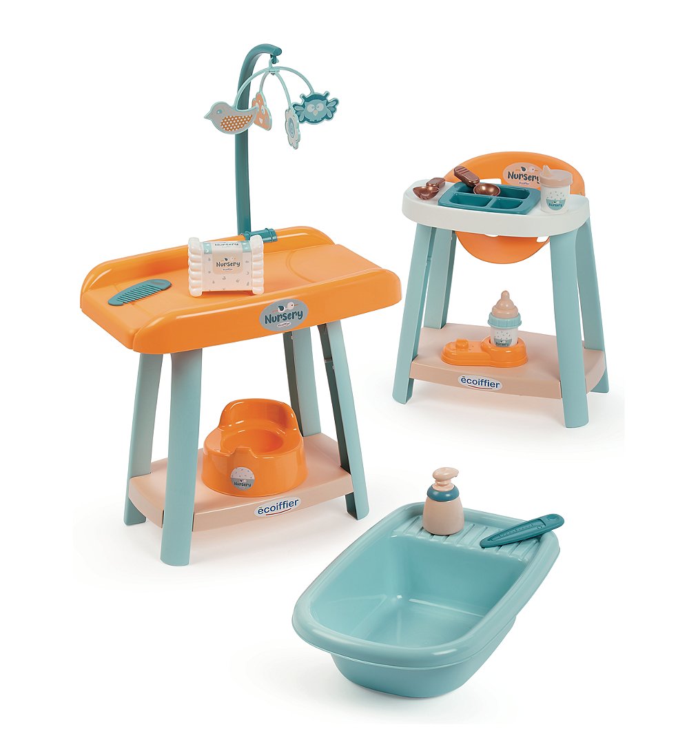 | La boîte contient | Un pack 3 en 1 ultra complet pour s'occuper de son poupon (non inclus). Avec sa chaise haute, sa table à langer et sa baignoire, tous accompagnés de ses accessoires, votre enfant ne manquera de rien pour s'occuper de son poupon. Dès 18 mois. Origine France Garantie. |