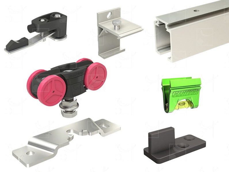 Ensemble de rail et accessoires pour une porte coulissante de 10 à 80 kg.