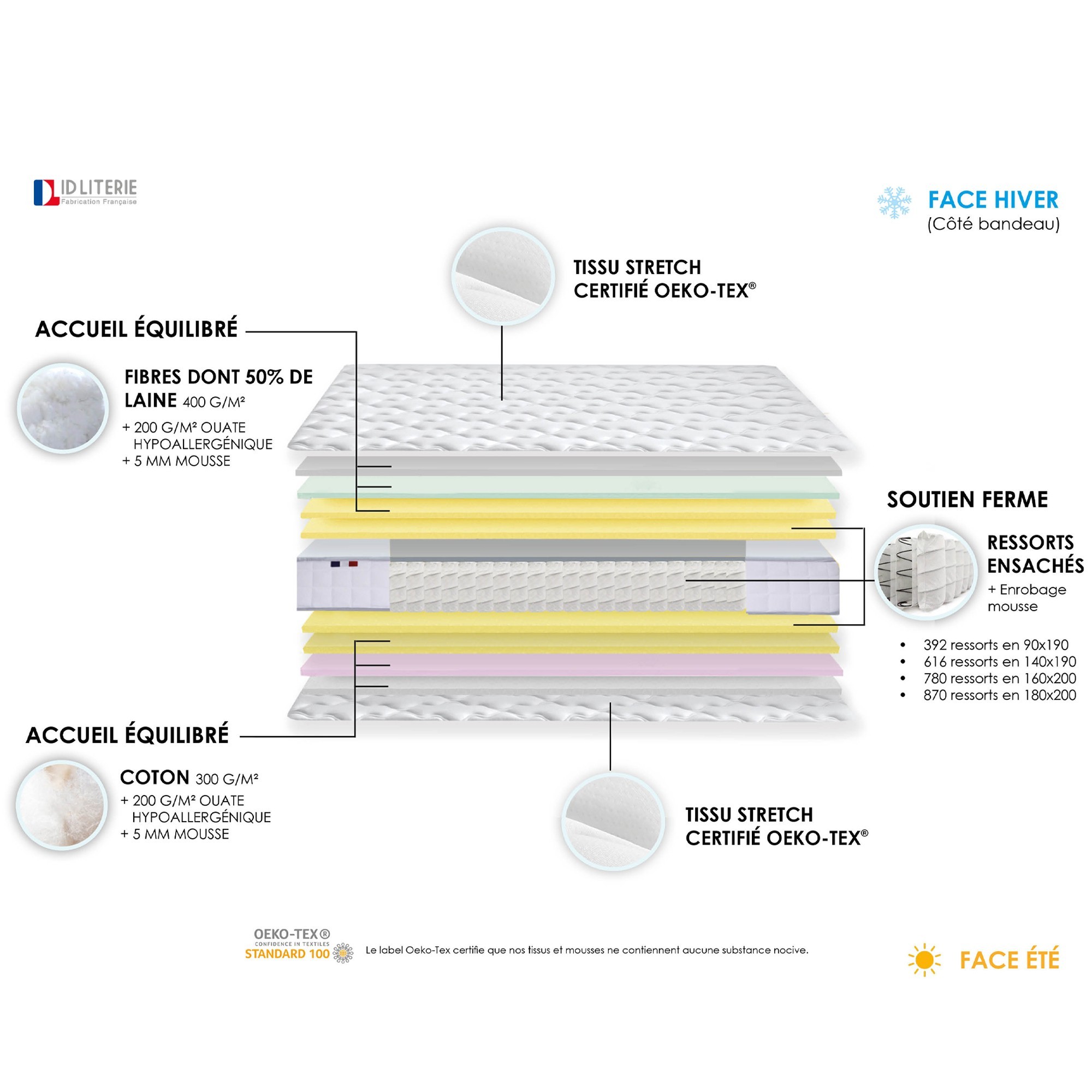 Ensemble relaxation ressorts + sommier avec réglage fermeté au niveau lombaire 2x80x200 - FABRICATION Fra