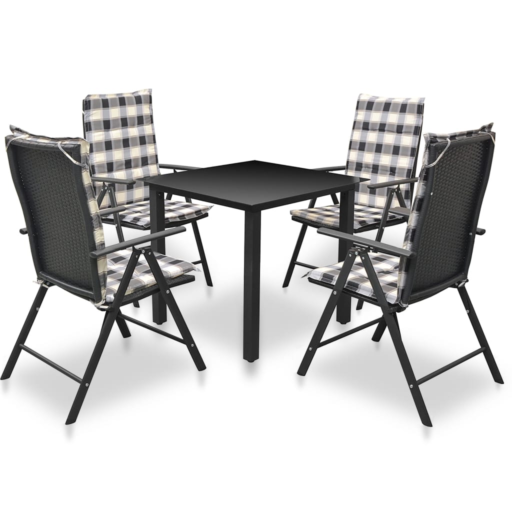 Ensemble repas d'extérieur 5 pièces avec coussins aluminium noir - Multicolore