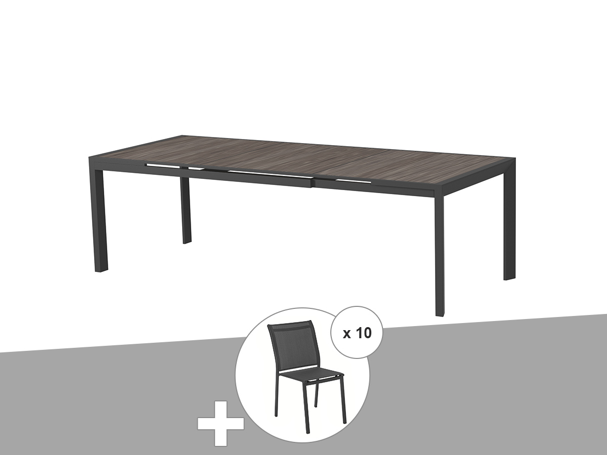 Ensemble repas table de jardin rectangulaire aluminium Evasion + 10 chaises Essentia - Hespéride