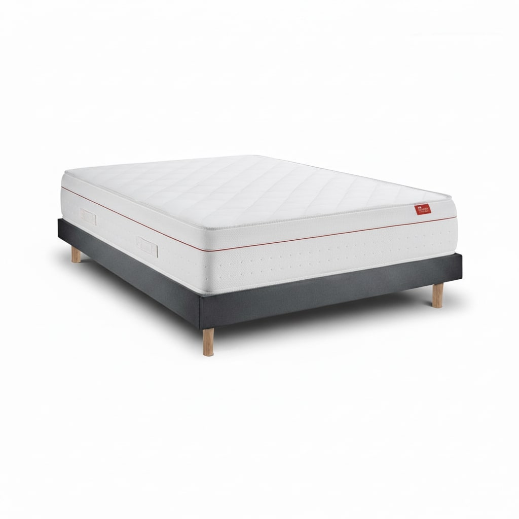 | Plus produit | Ensemble orthopédique luxe matelas à ressorts ensachés 27 cm réversible (face souple et face mi-ferme) - sommier lattes 15 cm certifié FSC®, facile à monter - velours haute qualité - pieds ronds bois naturel 15 cm certifiés FSC® - bonne aération et durabilité accrues. |