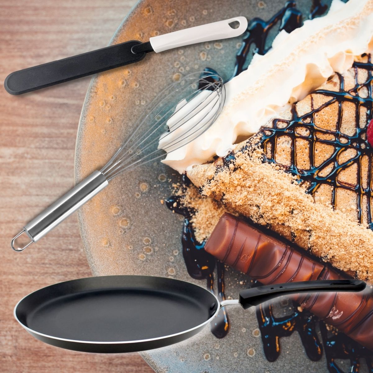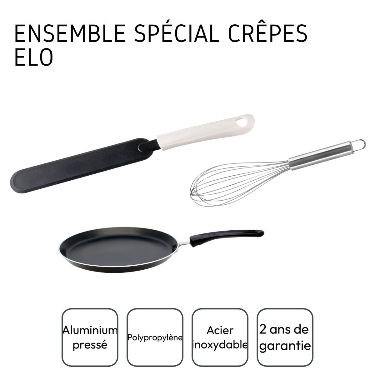 Libellé Ensemble spécial crêpes avec poêle, fouet et crêpière Elo Bratprofi