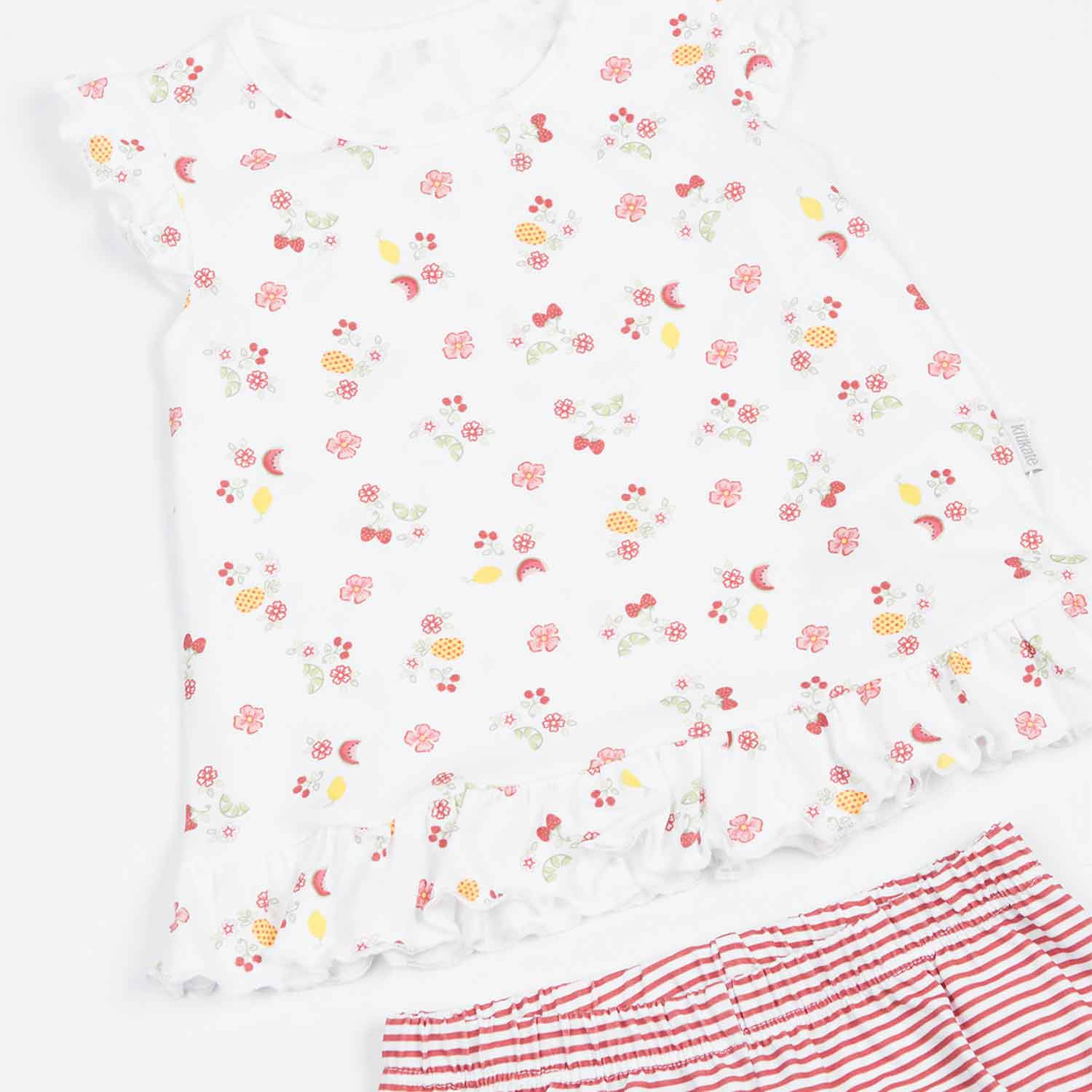 Un adorable petit t-shirt volanté aux illustrations fruités et son joli petit short boomer rayé élastiqué à la taille. Un joli imprimé fruité accompagné de jolis petits détails volantés qui vous feront craquer ! Un design estival, doux et tendance ! Confectionné en coton biologique, certifié GOTS*, l'ensemble vous garantit un confort idéal pour bébé ainsi que le respect de sa peau douce et délicate. En temps estival, il permet de réguler la température et d'absorber la transpiration de votre enfant.*Le Label "GOTS" (Global Organic Textile Standard): Cette certification vous garantit un processus de fabrication hautement contrôlé à chaque étape et certifié sans produits chimiques, pour le respect de l'environnement et des consommateurs.