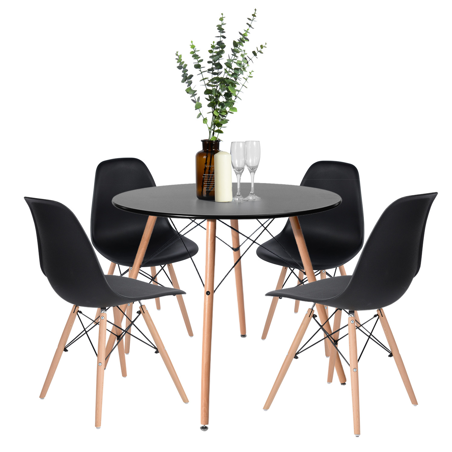 | Libellé | Ensemble table chaise à Manger 4 Places bois noir |