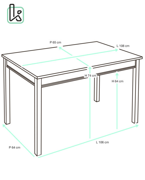 - Hauteur sous table : 64 cm