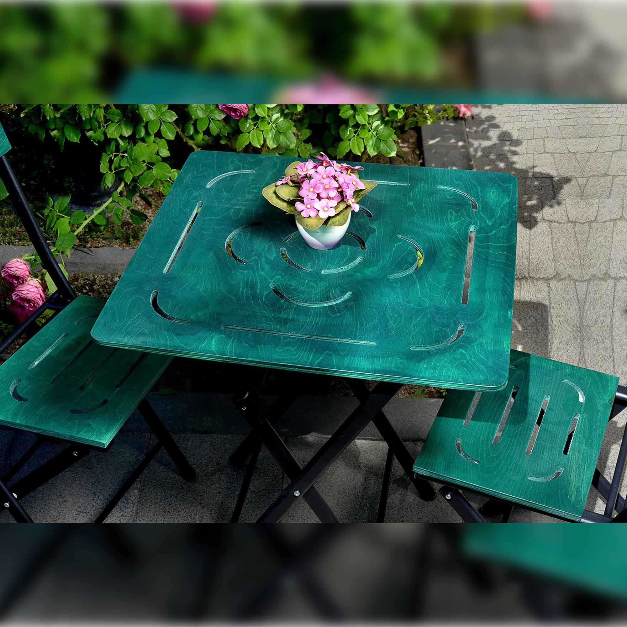 Ensemble table et chaises de jardin vert 60x73x60