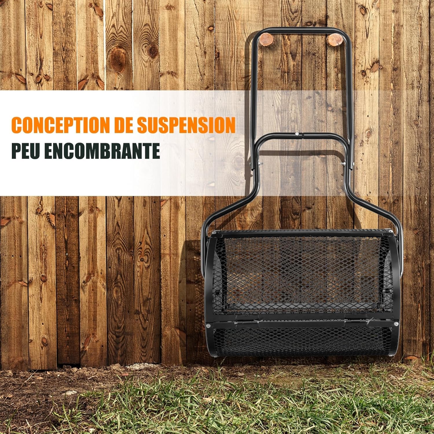 | Libellé | Épandeur de compost d68cm pour pelouses et jardin, capacité 75l, épandeur en treillis métallique noir |