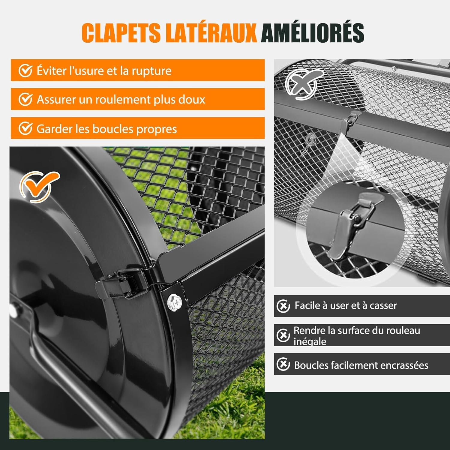 - Conception améliorée avec double loquets latéraux : Cet épandeur en treillis métallique est équipé de 2 loquets latéraux qui maintiennent une surface de rouleau plate pendant l'utilisation, assurant une bonne stabilité. De plus, la conception des loquets latéraux peut également éviter l'usure ou les dégâts, assurant une durabilité à long terme.