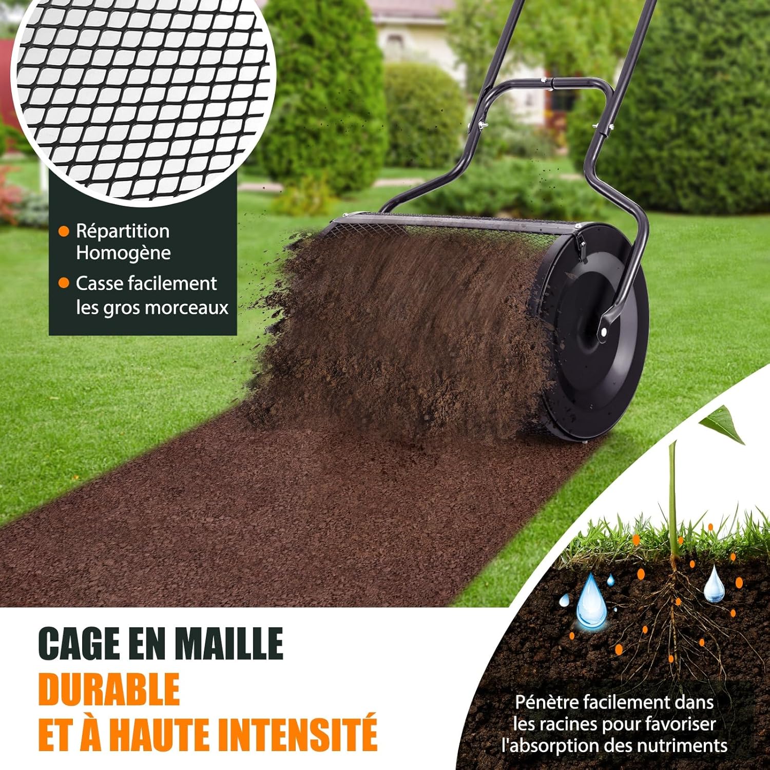 - Outil efficace pour l'entretien des pelouses : Comparé aux pelles traditionnelles, cet épandeur de compost est un compagnon parfait pour l'entretien des pelouses, vous permettant de distribuer rapidement, uniformément et efficacement le compost. De plus, sa poignée ergonomique en forme de U rend l'opération confortable et sans effort.