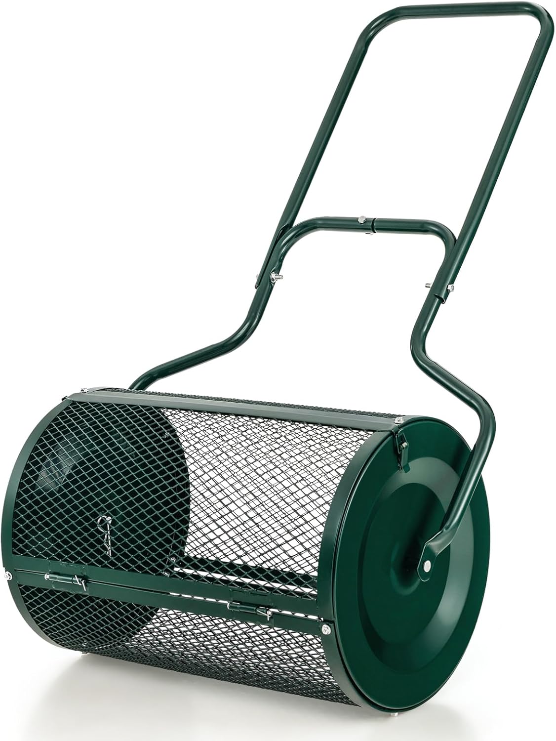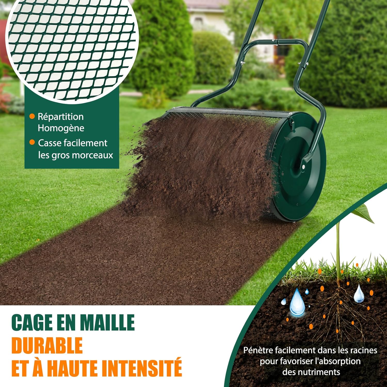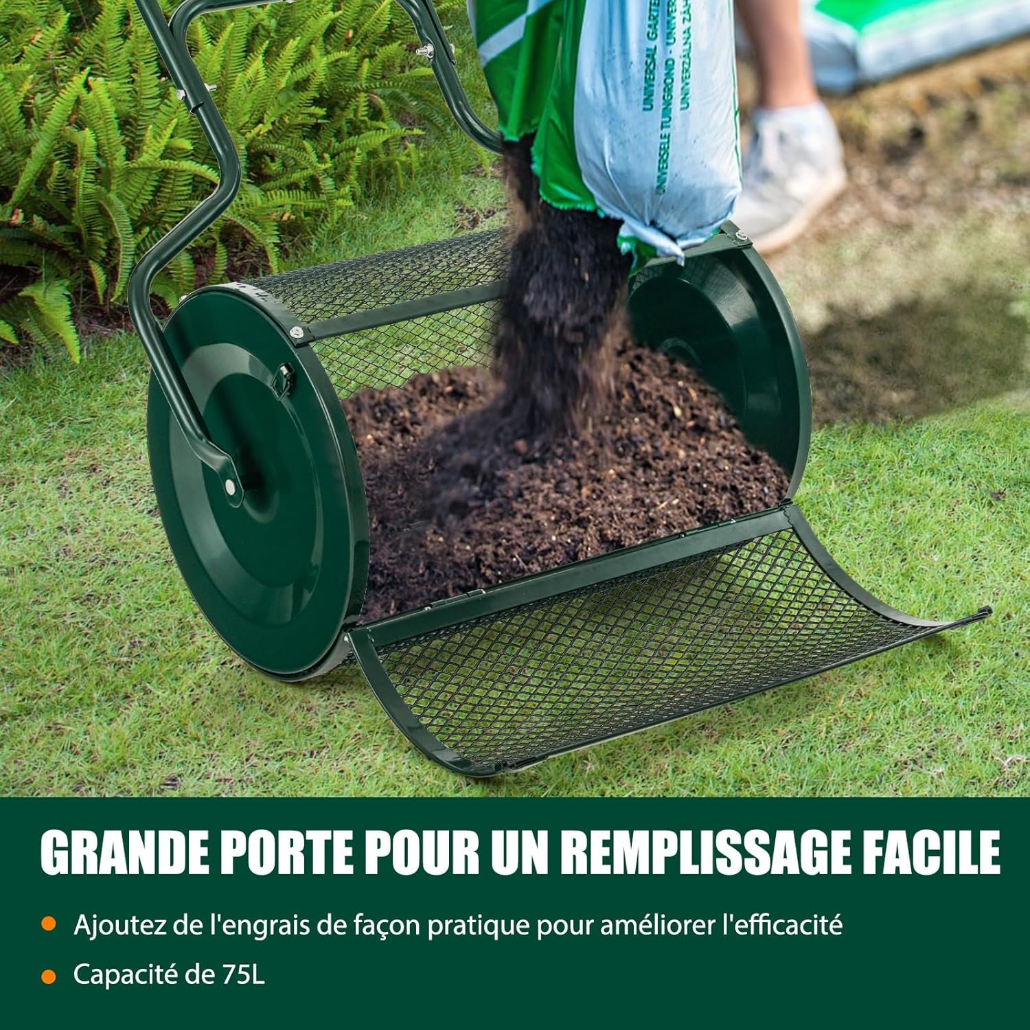 Épandeur de compost d68cm pour pelouses et jardin, capacité 75l, épandeur en treillis métallique vert