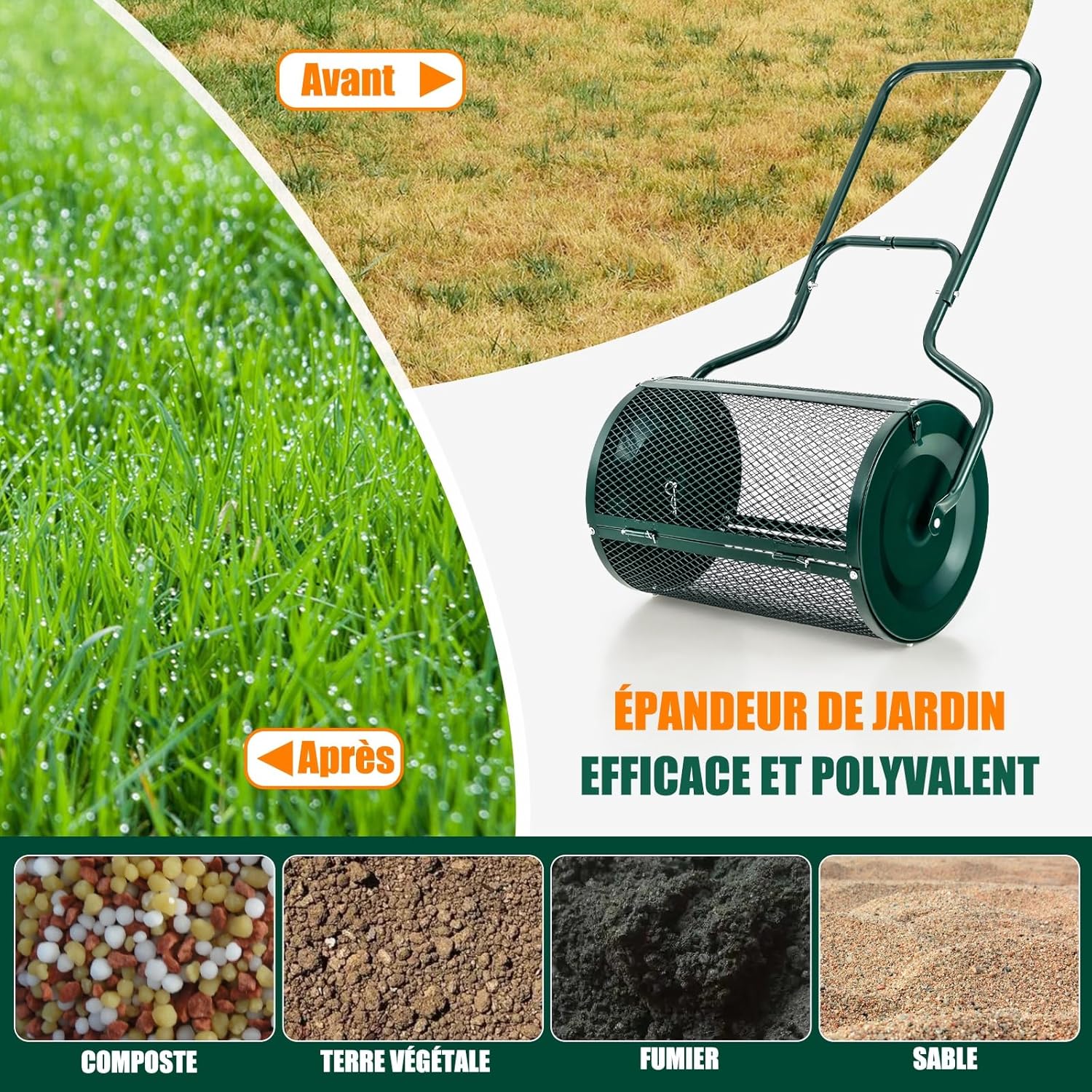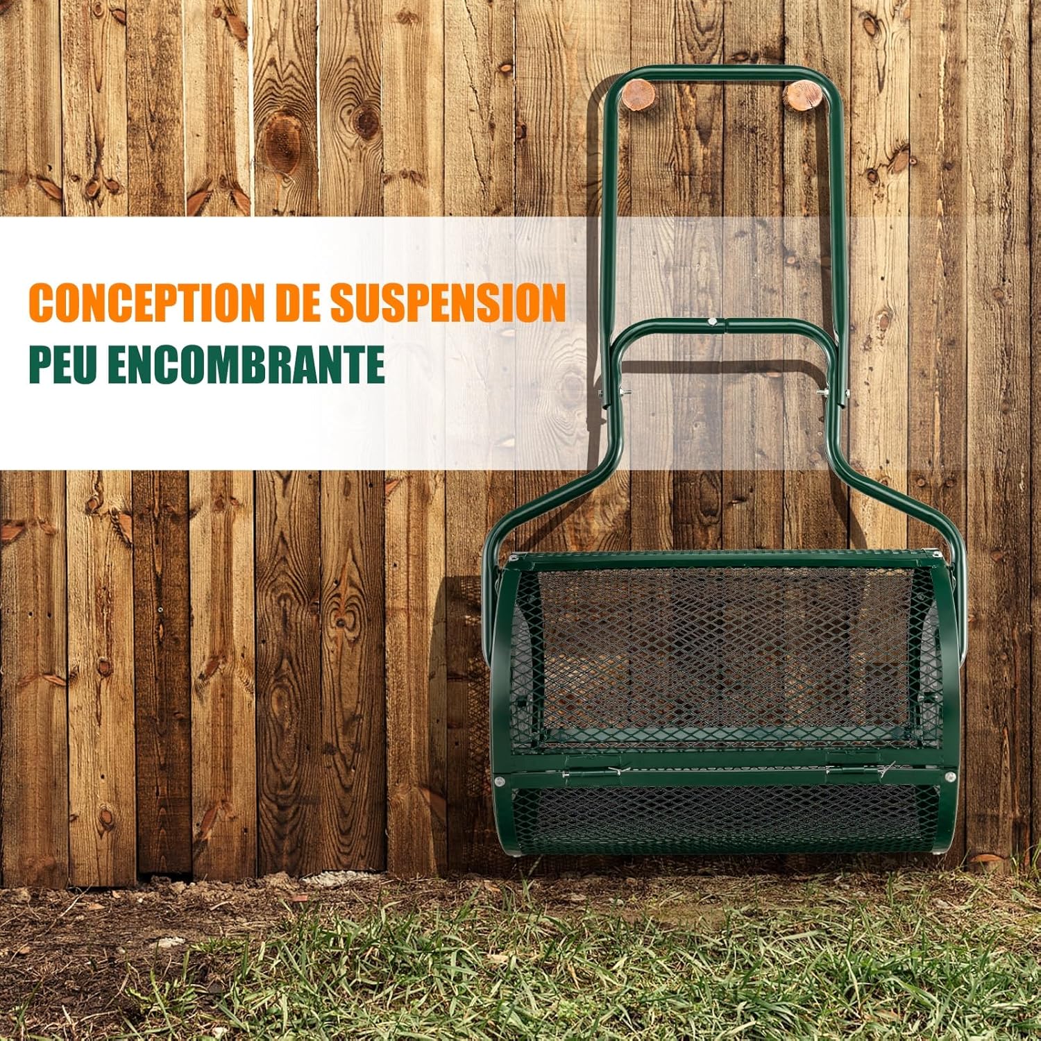 | Libellé | Épandeur de compost d68cm pour pelouses et jardin, capacité 75l, épandeur en treillis métallique vert |