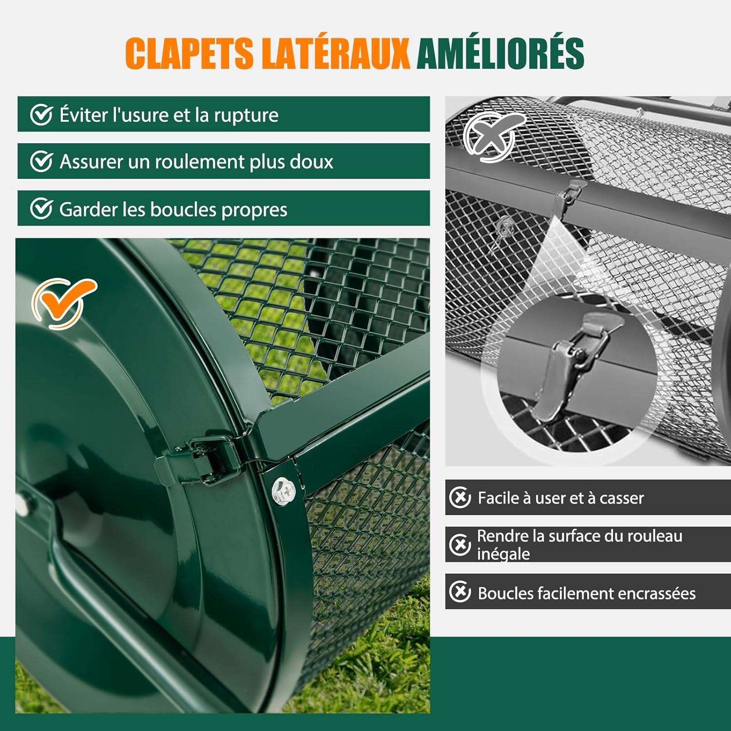 - Conception améliorée avec double loquets latéraux : Cet épandeur en treillis métallique est équipé de 2 loquets latéraux qui maintiennent une surface de rouleau plate pendant l'utilisation, assurant une bonne stabilité. De plus, la conception des loquets latéraux peut également éviter l'usure ou les dégâts, assurant une durabilité à long terme.