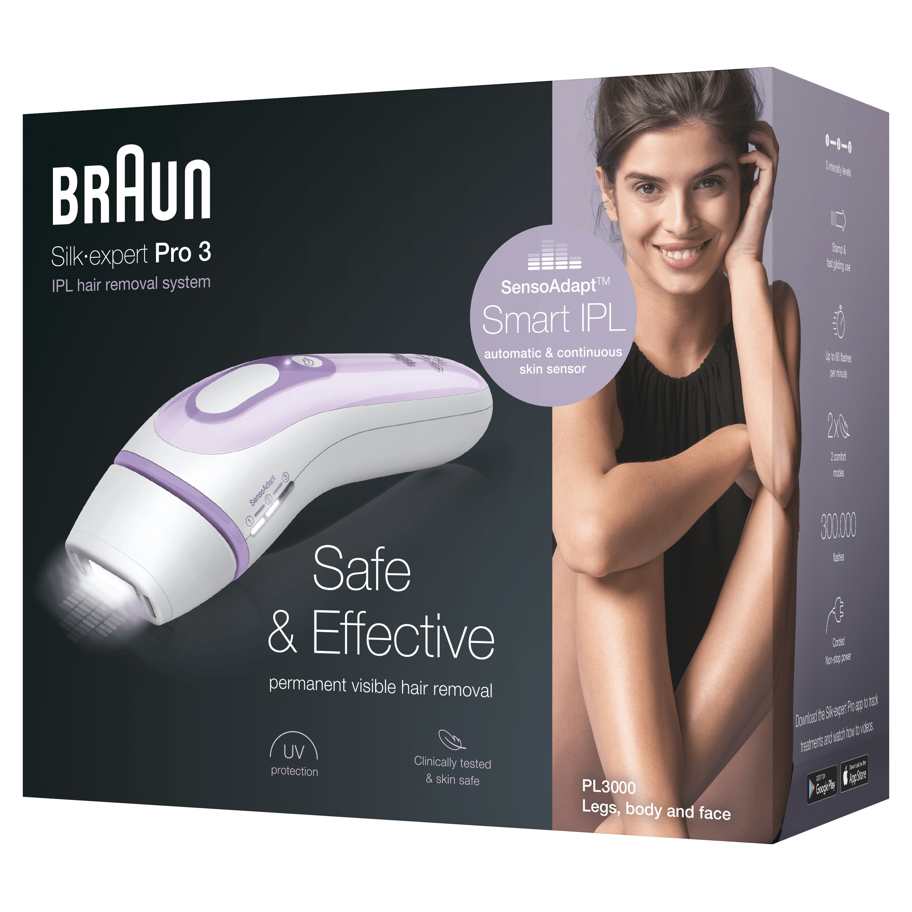 Silk·expert Pro, la dernière génération d’épilateur à lumière pulsée (IPL) de Braun. L’épilateur lumière pulsée Silk expert Pro 3 garantit une épilation permanente des poils en seulement 3 mois*. La technologie IPL (épilateur lumière pulsée) la plus sûre, testée sous contrôle clinique et dermatologique comme étant sûre pour la peau par un organisme international de santé de la peau (Skin Health Alliance). Le seul épilateur à lumière pulsée (IPL) qui s’adapte automatiquement et en continu au teint de peau pour une épilation permanente sûre et efficace des poils**. Obtenez des résultats 2 fois plus rapidement qu’avec les anciens modèles d’épilateur à lumière pulsée Silk·expert 3 : 9 minutes seulement pour les 2 jambes. 300 000 flashs, 20 % de plus que les anciens modèles d’épilateur à lumière pulsée Silk·expert 3. *Testé sur la partie inférieure de la jambe, les aisselles et le maillot, en suivant le programme de traitement. Les résultats peuvent varier selon les personnes. **Technologie combinée avec Cyden. ***Pour davantage d’informations, veuillez visiter le site www.braun.com/fr.