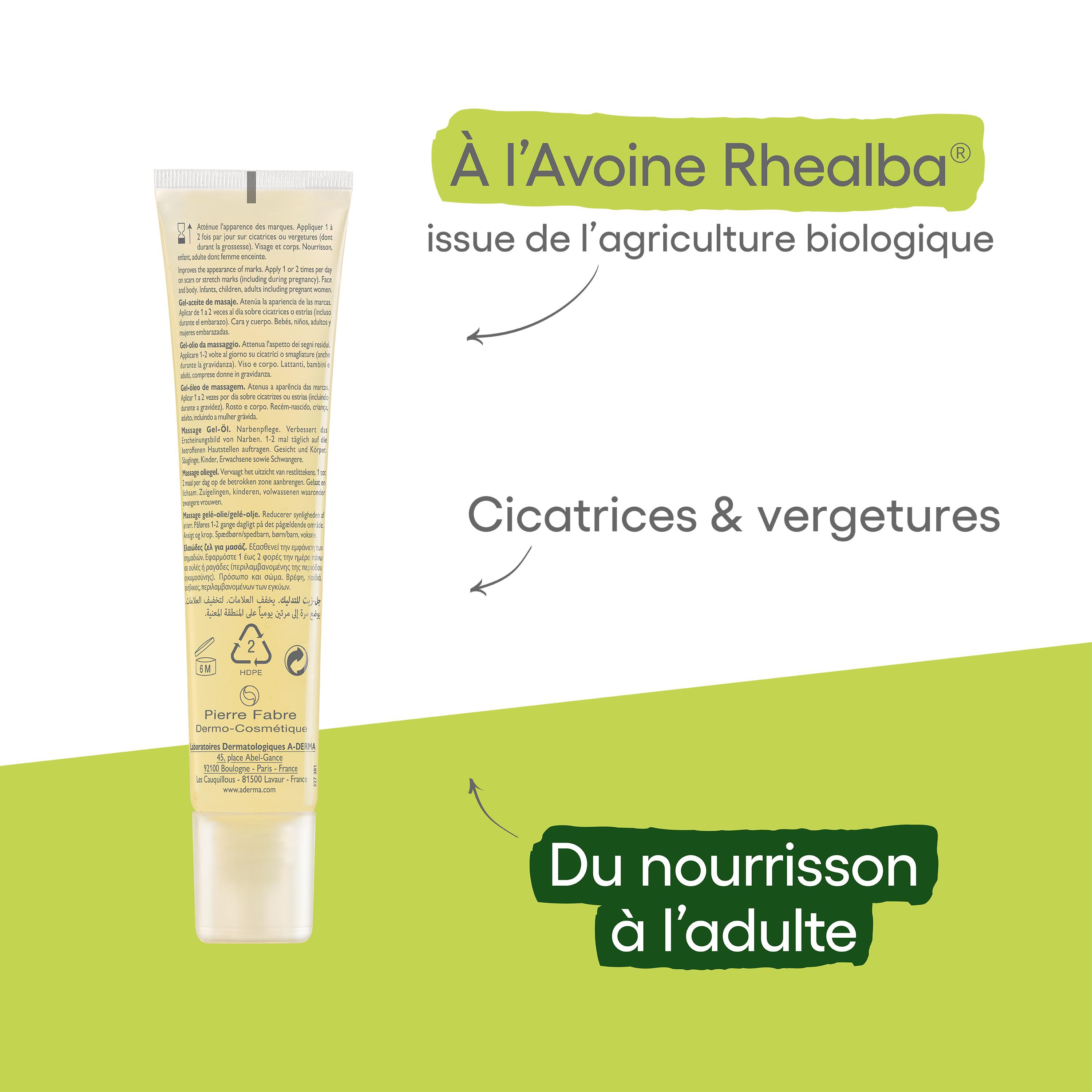 Ce gel-huile de massage s’applique deux fois par jour et contribue à atténuer l’apparence des cicatrices* et des vergetures. Une texture gel-huile brevetée** qui ne coule pas et se fluidifie durant le massage. Un geste recommandé pour stimuler et favoriser la microcirculation, optimiser l’hydratation et diminuer les sensations de tiraillement et de démangeaisons. La formule d’EPITHELIALE A.H DUO Gel-huile de massage, sans silicone et sans huiles essentielles et est composée de neuf ingrédients seulement et à 98 % d’origine naturelle. Elle est anti-marques et améliore l’aspect des marques cutanées chez 100 % des sujets¹. Recommandée aux femmes enceintes, elle est également idéale pour toute la famille. Avoine Rhealba® issu de l'agriculture biologique. Info vegan : sans ingrédient d'origine animale. ¹ % de sujets évalués par le dermatologue après 3 mois d’utilisation – Etude clinique monocentrique réalisée sur 26 sujets présentant deux cicatrices symétriques et comparables en phase de remodelage. Application 1 à 2 fois par jour. * Cicatrices réépidermisées. ** Brevet déposé.