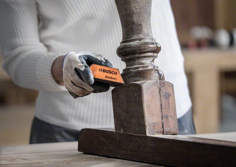 L'éponge de ponçage en mousse Expert de la marque Bosch utilise la technologie Surface Structure, qui combine des technologies avancées de collage et de revêtement de surface pour fixer les grains au support. Ainsi, il n'y a pas de perte en concrétions durant le ponçage des bords et des coins. De plus, cela minimise le colmatage et les particules peuvent s'éliminer facilement. En outre, la mousse peut s'adapter aux surfaces de travail avec une pression uniforme.