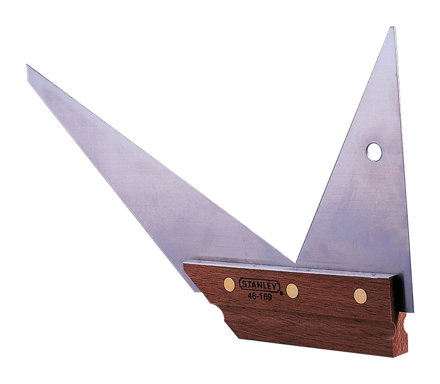 L'équerre de menuisier à double onglet de la marque Stanley est un matériel permettant le traçage des angles à 90°, 60° et 45°. Elle est dotée de talon en bois et de garniture en aluminium, ses lames étant en acier.