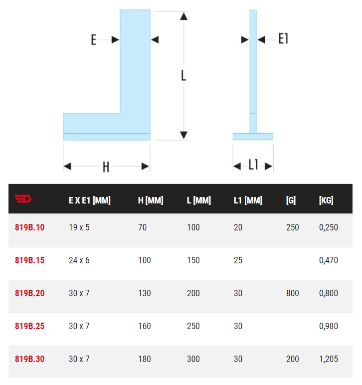 Libellé Equerre simple à chapeau 180x300mm - FACOM - 819B.30