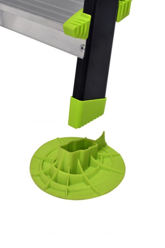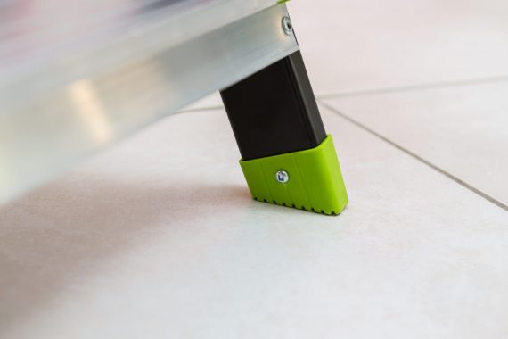 Des patins spécial extérieur qui peuvent se retirer facilement pour une utilisation de l'escabeau en intérieur.