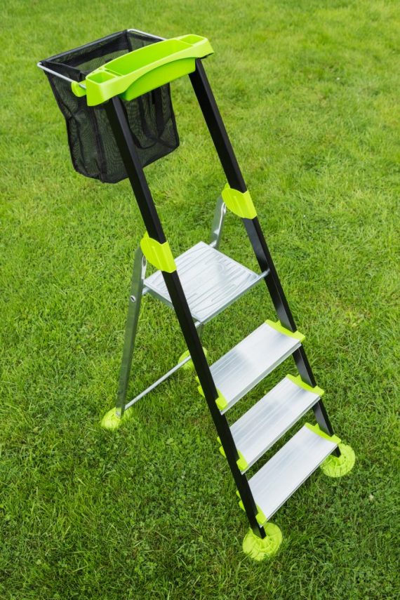 Ses larges marches sont confortables, il dispose d'un panier détachable permettant de faire la cueillette et d'une tablette porte-outils pensé pour contenir le nécessaire du jardinier.