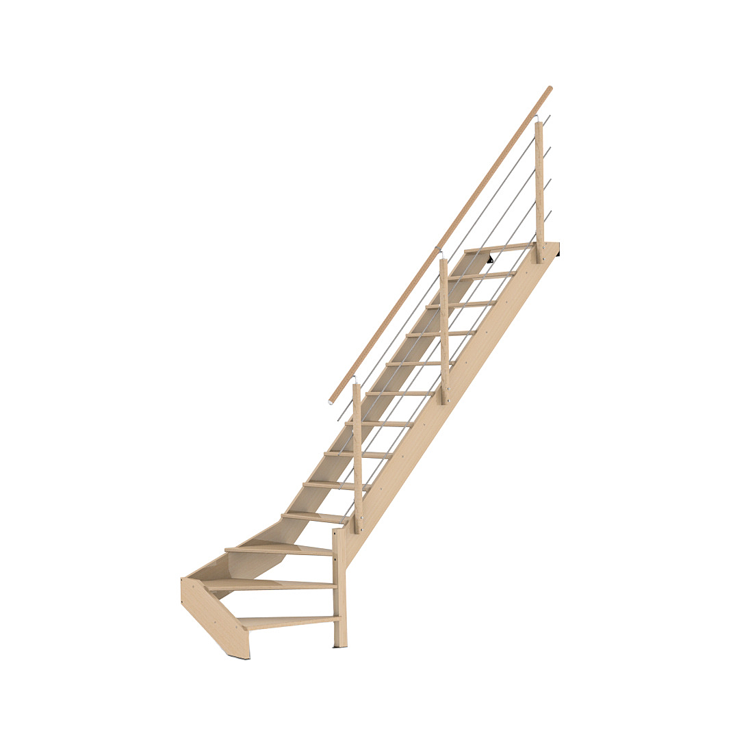 Escalier 1/4 tournant droit bois Novah 13 marches hêtre - BURGER