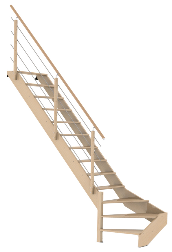 kit escalier en hêtre, 1/4 tournant à gauche avec 13 marches. A fixer obligatoirement contre un mur.
