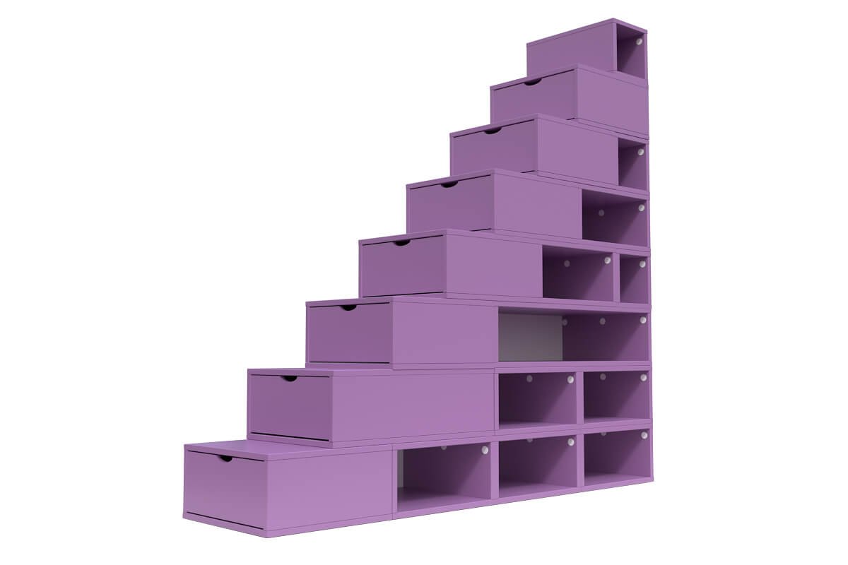 Escalier Cube de rangement hauteur 200 cm, Couleur: Lilas