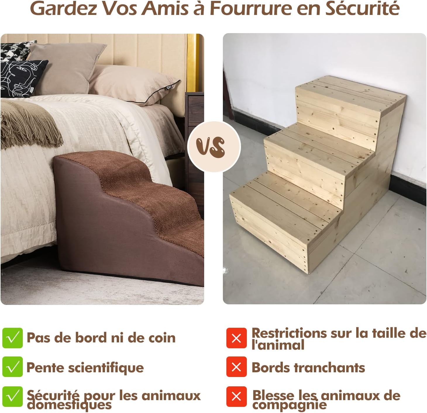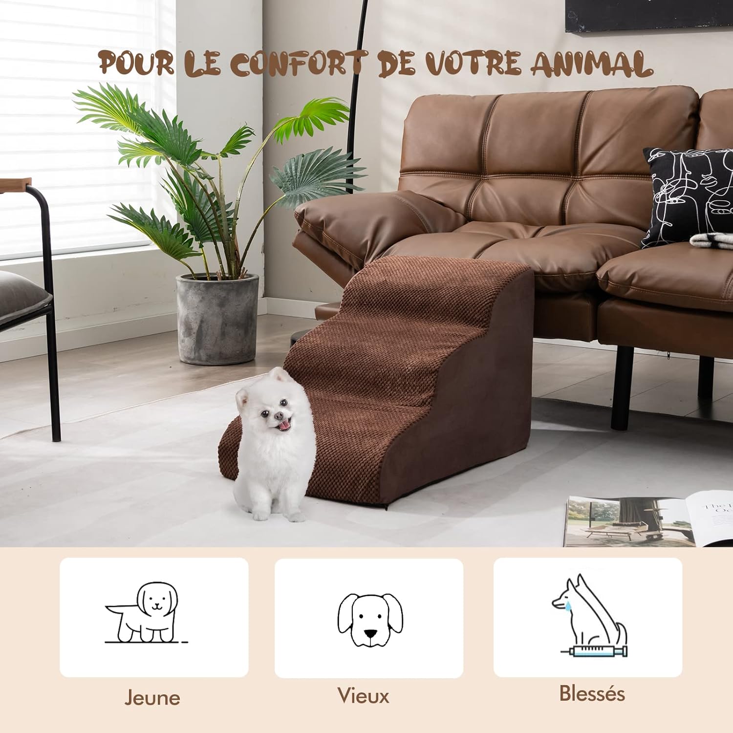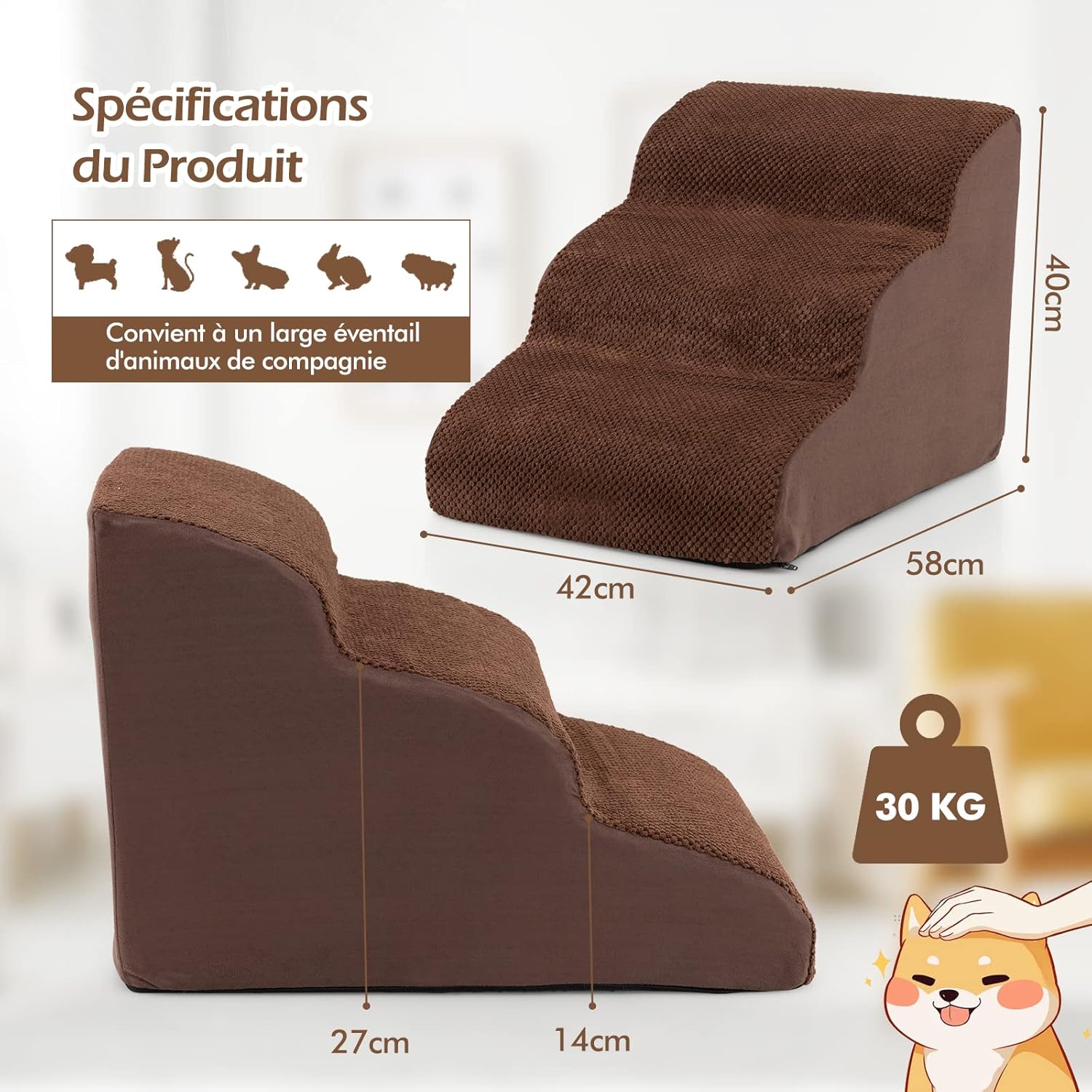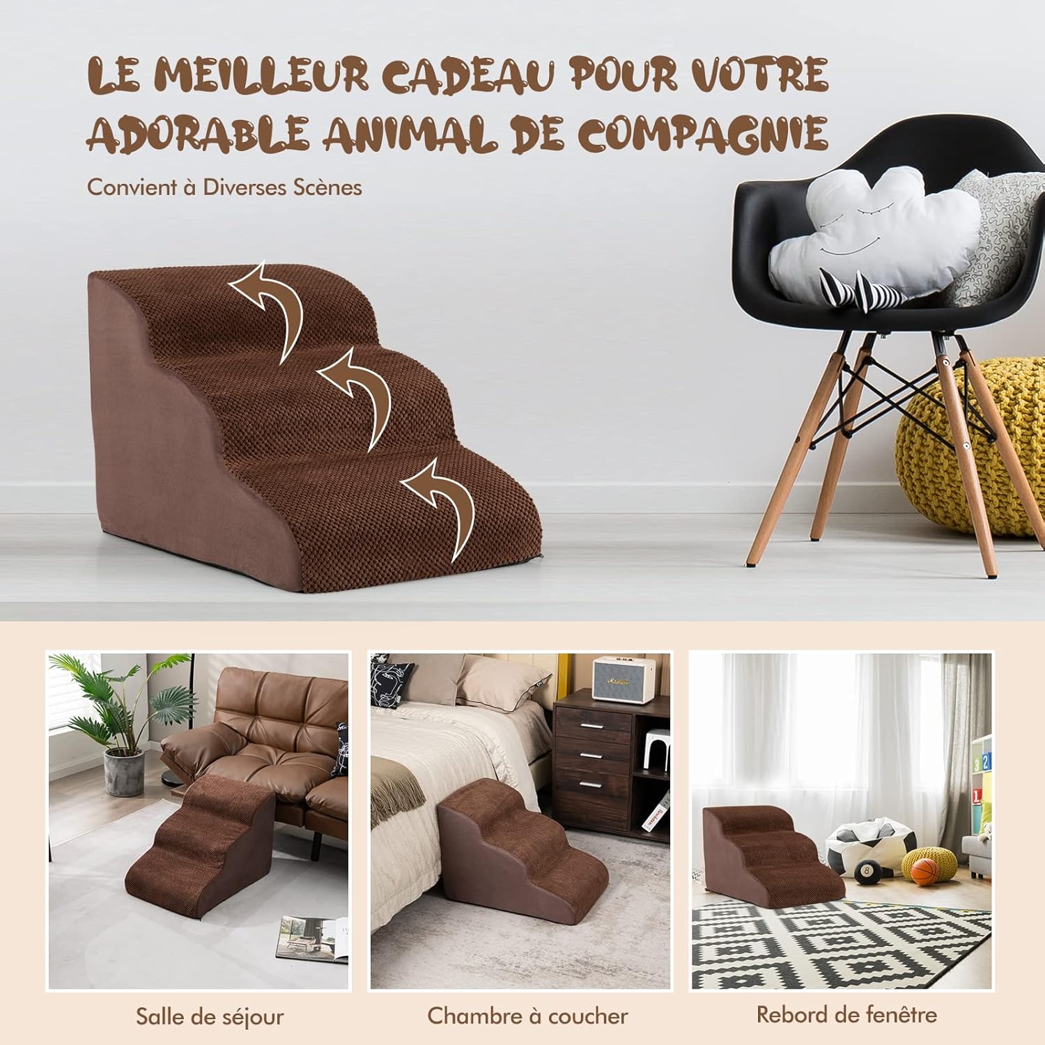 | Libellé | Escalier pour chien chat à 3 marches, en éponge haute densité, rampe avec fond antidérapant,marron |