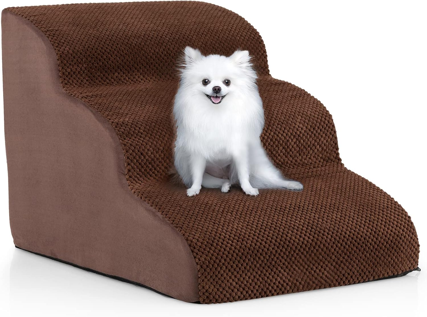 Escalier pour chien chat à 3 marches, en éponge haute densité, rampe avec fond antidérapant,marron
