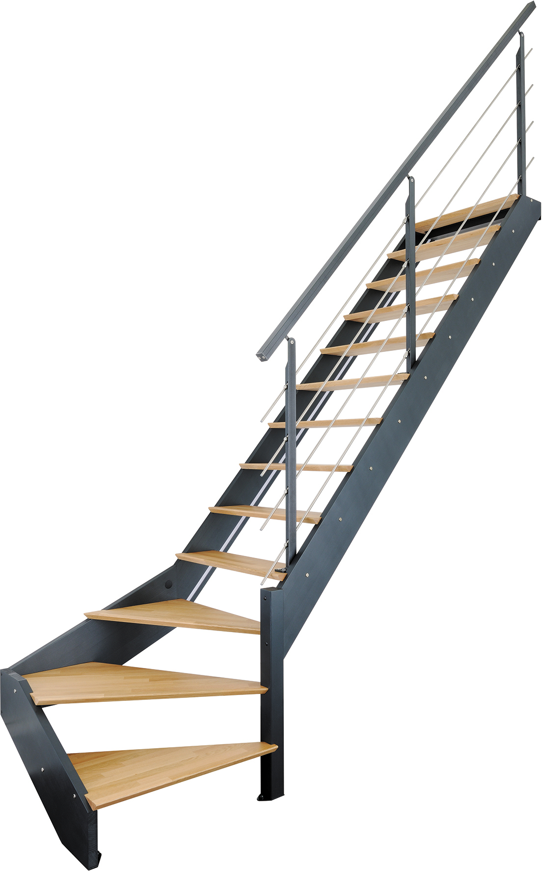Escalier SPARK Chêne & Hêtre 1/4T droit + garde corps 1 cote + LED - BURGER