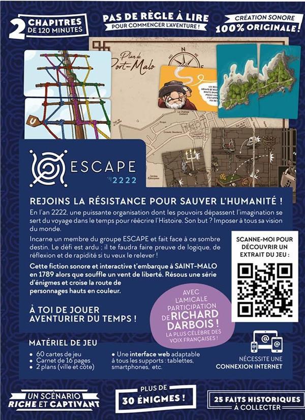 Vous devez résoudre plus de 30 énigmes dans le but de sauver le professeur Constant et de retrouver la Déclaration des droits de l'homme et du citoyen. Vous allez explorer le Saint-Malo de 1789 et rencontrer de nombreux personnages durant l'aventure, d'un prêtre un peu trop bavard à un pêcheur aigri, en passant par la capitaine d'un bateau de pirates déjantés. Une véritable intrigue a été écrite autour des énigmes, elle s'inscrit dans un univers plus vaste, laissant la possibilité d'écrire de nombreuses histoires dans cet ensemble cohérent... . Une immersion sonore forte : 45 min de musiques orignales 1H d'ambiance et de bruitages 24 personnages interprétés par des comédiens et commédiennes professionnels. . Une interface de jeu sur mesure et intuitive.