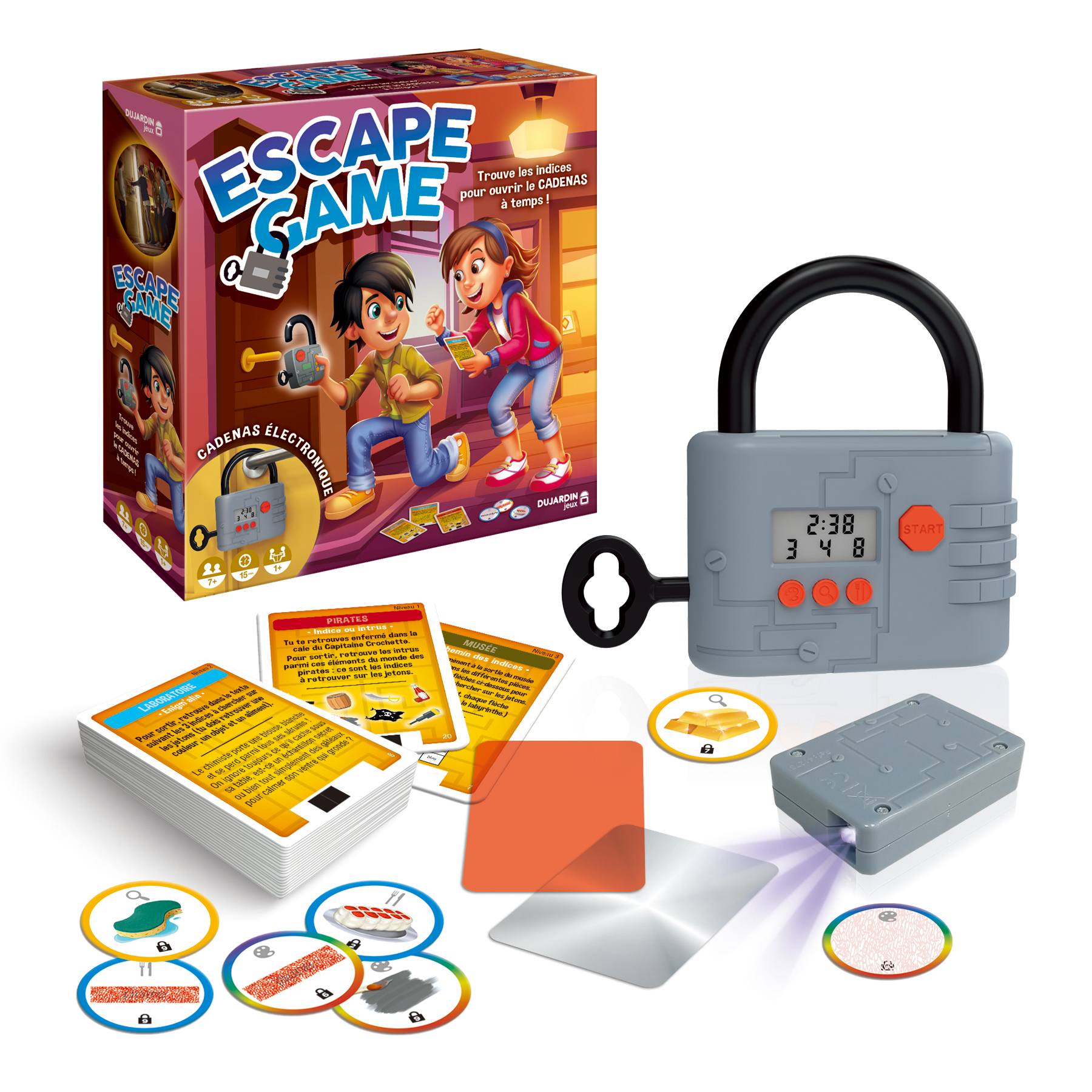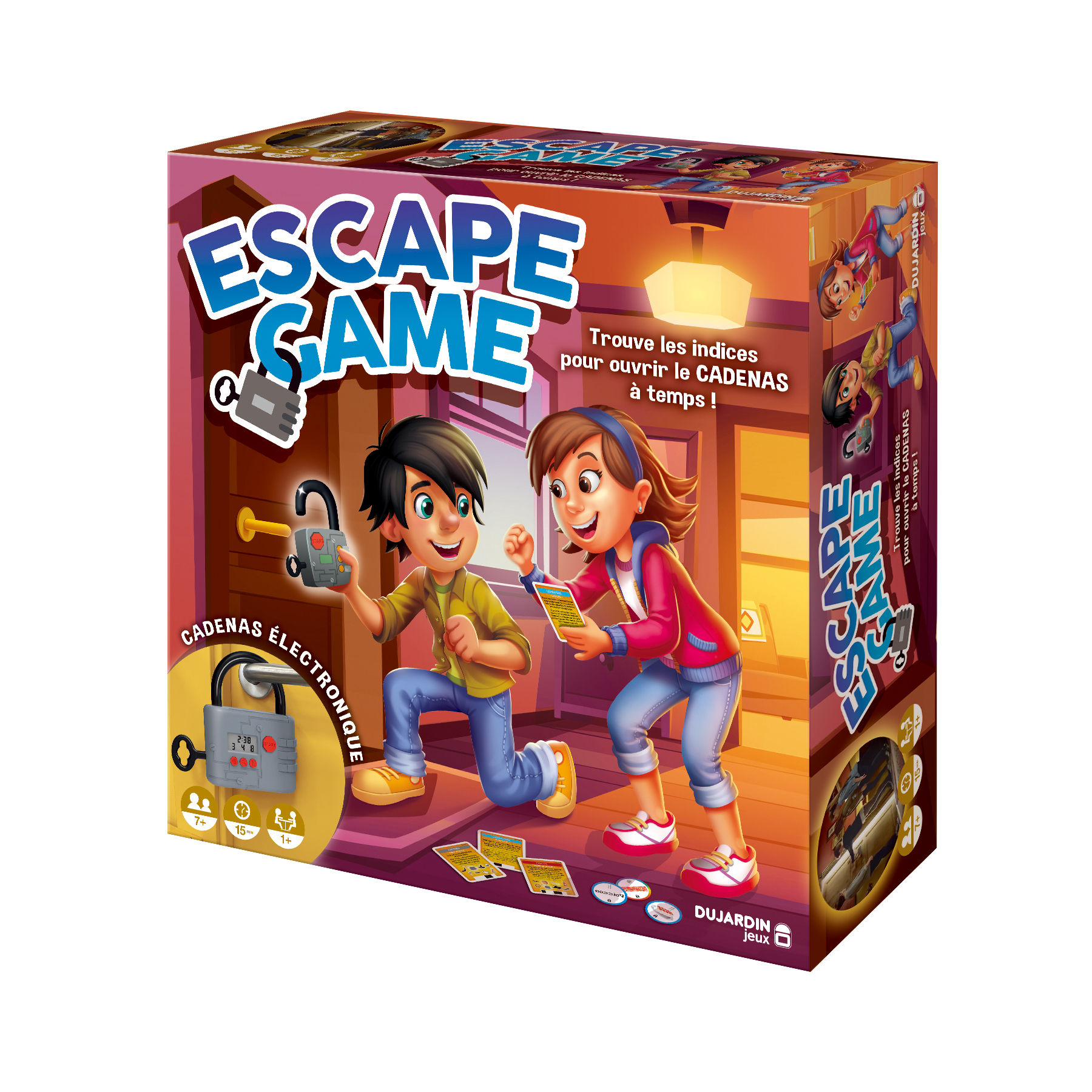 L'Escape Game pour les enfants ! Résous les énigmes et trouve les indices à temps pour ouvrir le cadenas électronique et sortir de la pièce !