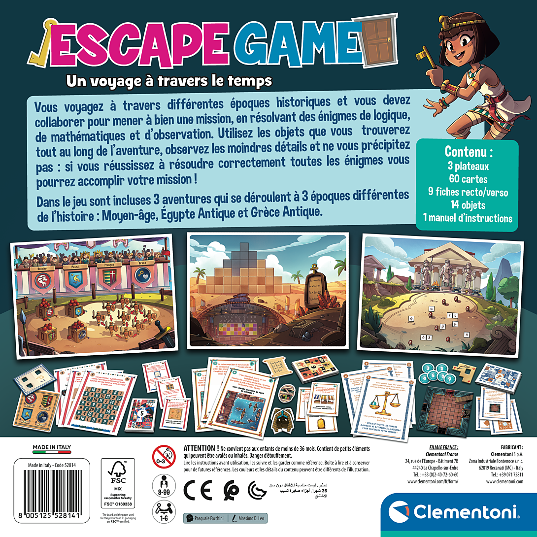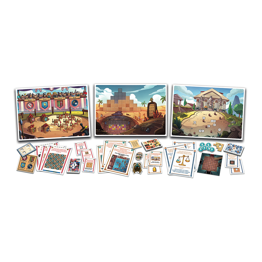 • Pour tous les passionnés d’Escape Games, d’énigmes et de devinettes, voici 3 incroyables aventures à vivre en voyageant dans le passé. • De nombreuses énigmes à résoudre avec astuce et logique et des indices à retrouver pour parvenir à aller au bout de l’aventure. • Voyage à travers 3 aventures : dans l’Égypte antique, au Moyen-âge, en passant par la Grèce antique.
