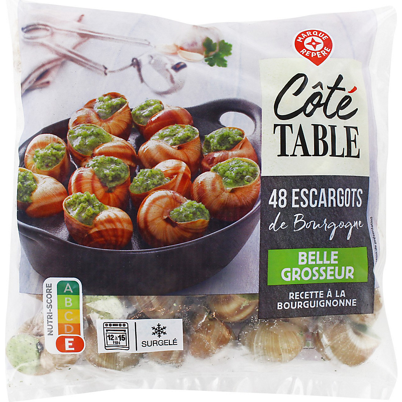 48 escargots de Bourgogne, calibre belle grosseur, préparés à la bourguignonne. Surgelés COTE TABLE