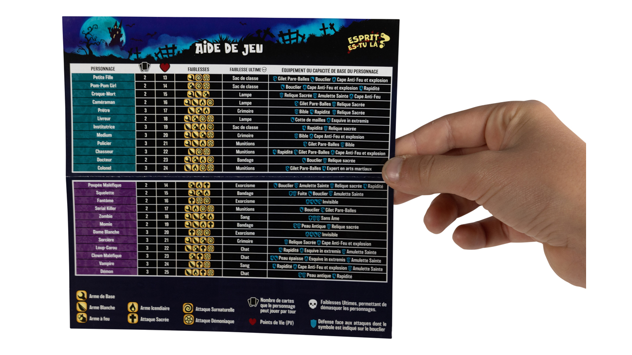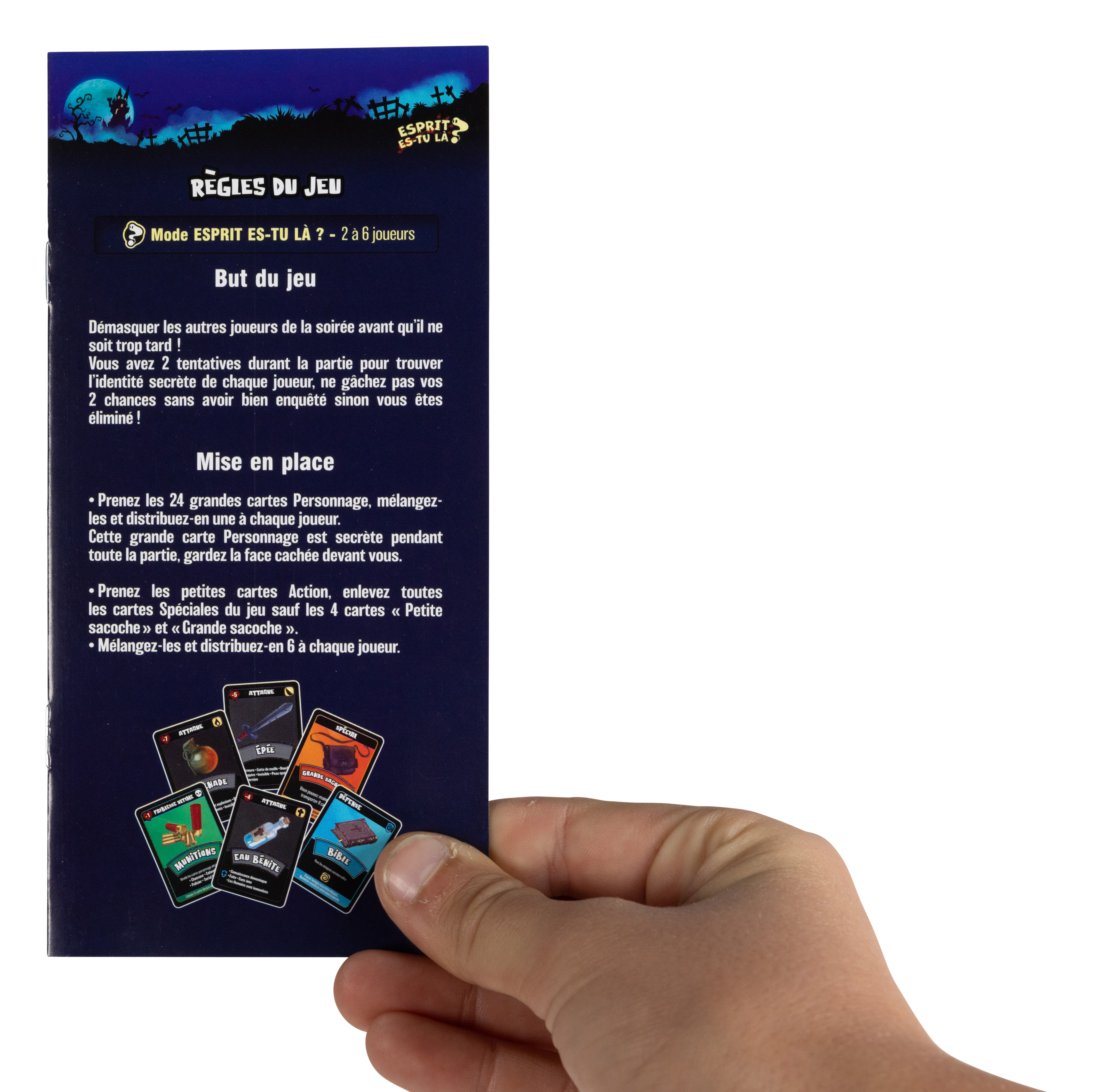Vous recevez une mystérieuse lettre d’invitation pour une soirée déguisée dans un château hanté. Mais passé minuit, l’horreur se déchaîne. Qui sont les auteurs de ces meurtres énigmatiques ? Les invités se dispersent dans le château à la recherche d’équipement pour se défendre. Trois modes de jeu : ESPRIT ES-TU LÀ ? Découvrez qui se cache sous chaque costume BIEN CONTRE MAL Combattez en équipe BOUCHERIE Survivez seul en éliminant tous les autres joueurs Plongez dans ce jeu de cartes captivant, simple et amusant, mais préparez-vous à ressentir l’effroi à chaque coin du château hanté ! Démasquez la véritable identité des 12 Humains et des 12 Créatures Démoniaques avant que le mal ne s’occupe de vous. Survivrez-vous à cette nuit terrifiante ?