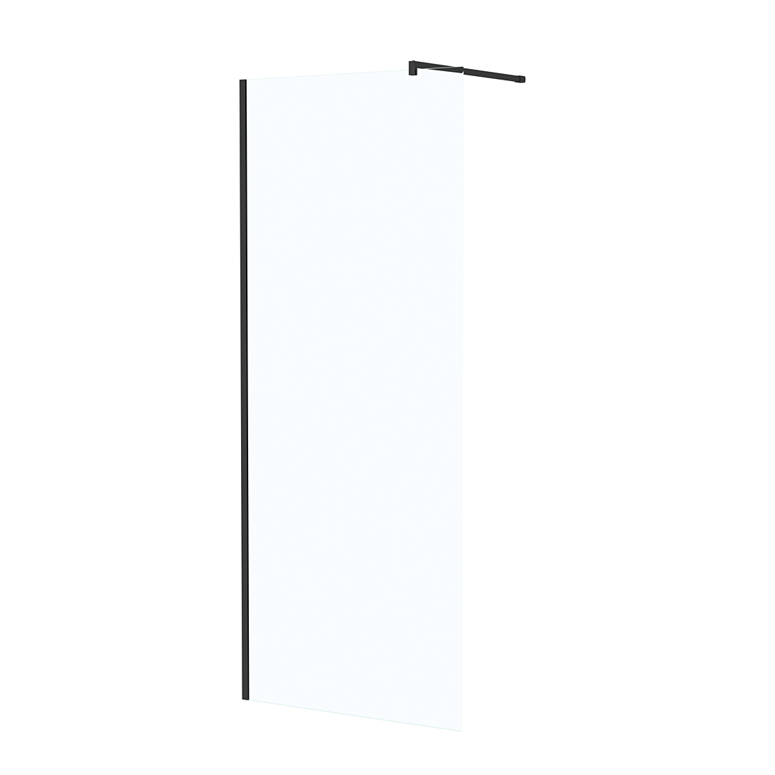 Caractéristiques techniques Épaisseur du verre trempé : 5 mm Finition du verre : Transparent Finition du profilé : Noire Épaisseur du profilé mural : 2cm Bras de maintien en aluminium finition noire de 100 cm découpable INSTALLATION RÉVERSIBLE Dimensions : 80 cm x 195 cm