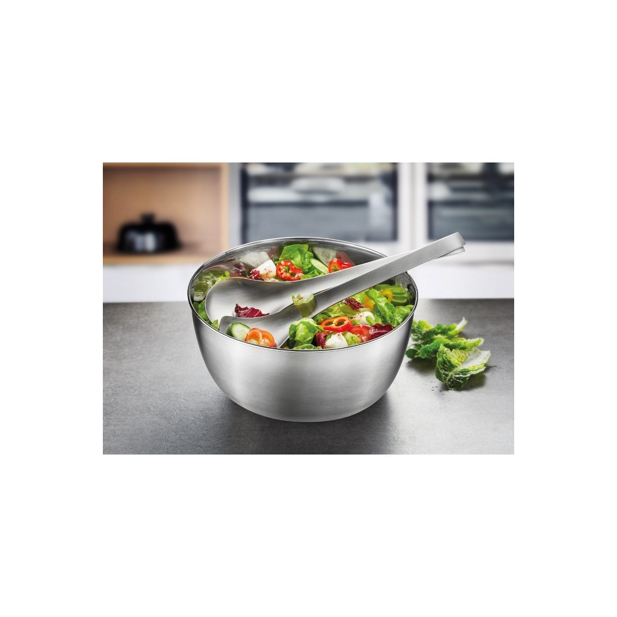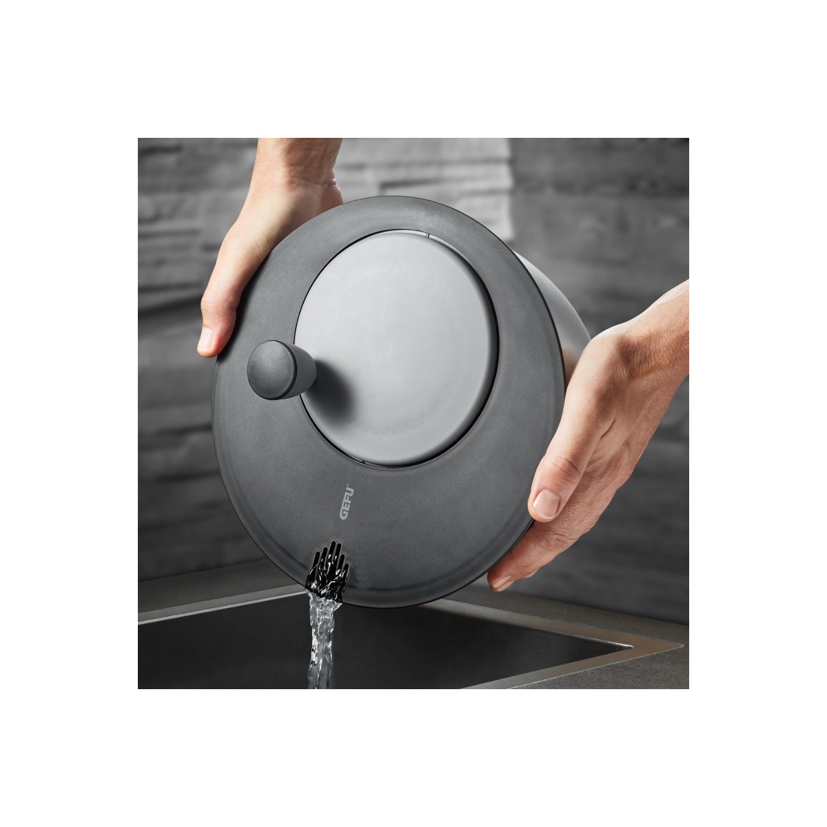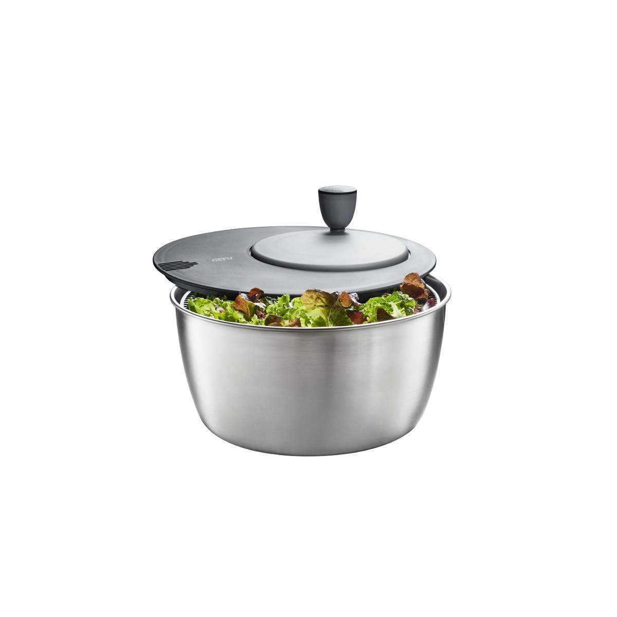 L'essoreuse à salade sèche les feuilles de salade en un tournemain tout en les gardant bien croquantes. L'excédent d'eau qui se trouve dans l'élégant saladier en inox s'évacue facilement par la goulotte intégrée