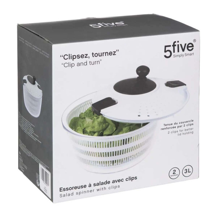 Couleur : GRIS Nombre d’assortiments : 1 Description assortiments : 8 x essoreuse salade clips GRIS, Détail dimension : D. 25,5 x H. 16,5 cm Matière : POLYPROPYLENE/POLYSTYRENE Packaging : BOITE IMPRIMEE
