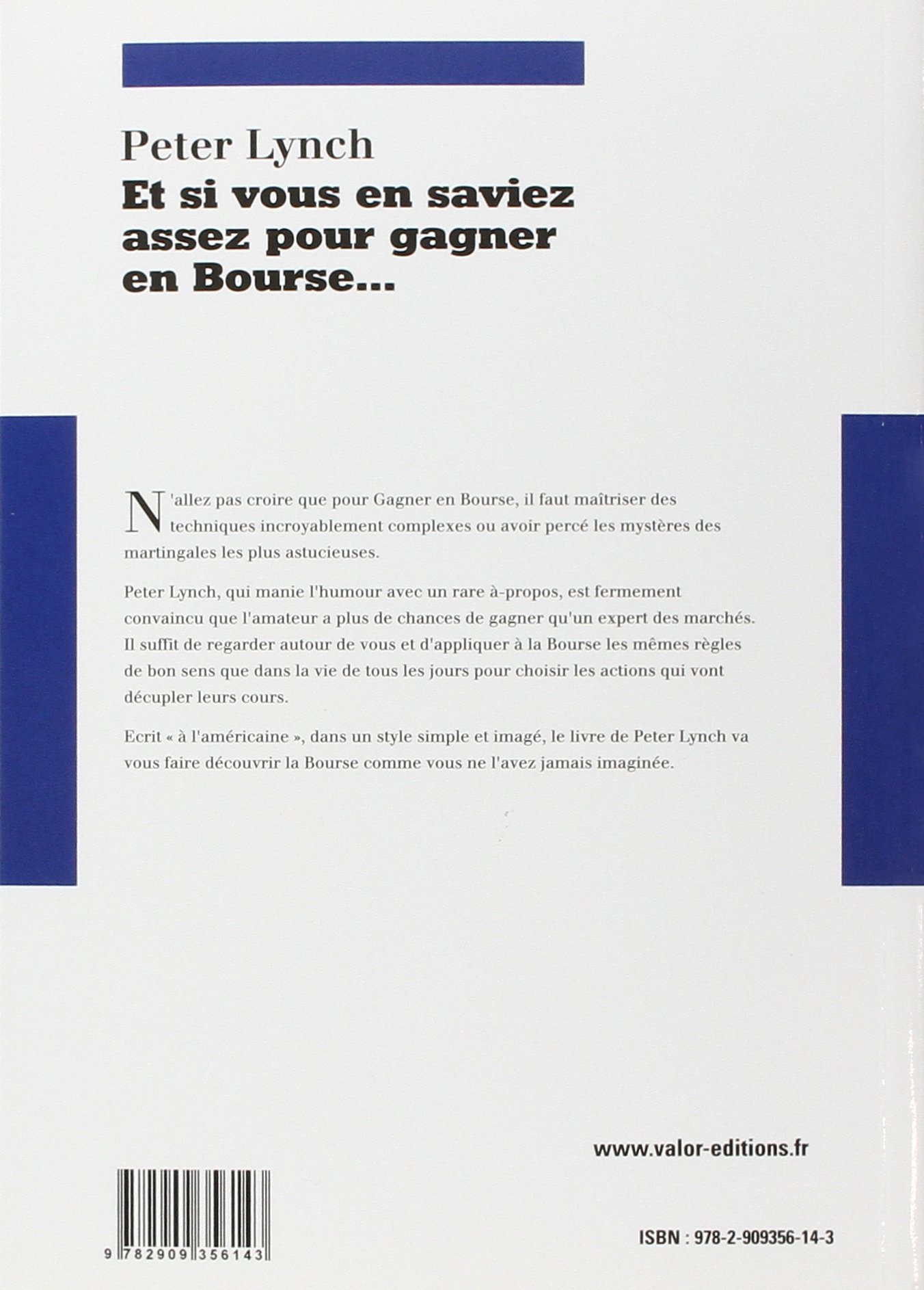 Ecrit "à l'américaine", dans un style simple et imagé, le livre de Peter Lynch va vous faire découvrir la Bourse comme vous ne l'avez jamais imaginée.