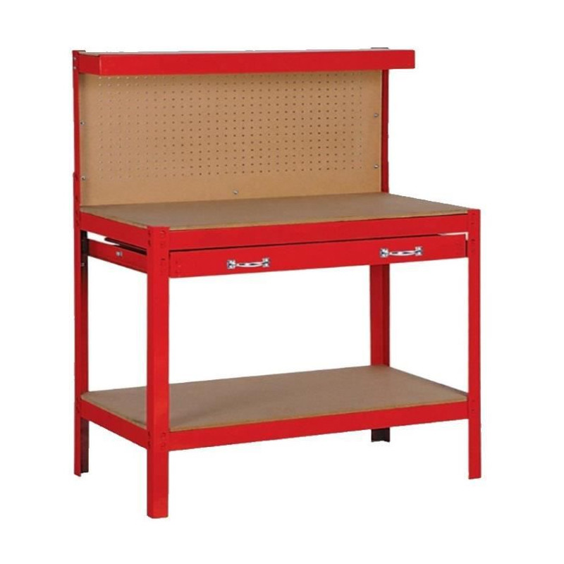 | Plus produit | Plan de travail MDF 12 mm; grand tiroir coulissant; étagère inférieure; large façade perforée pré-percée pour accrocher les outils; capacité de charge 100 kg; emballage majoritairement recyclable |