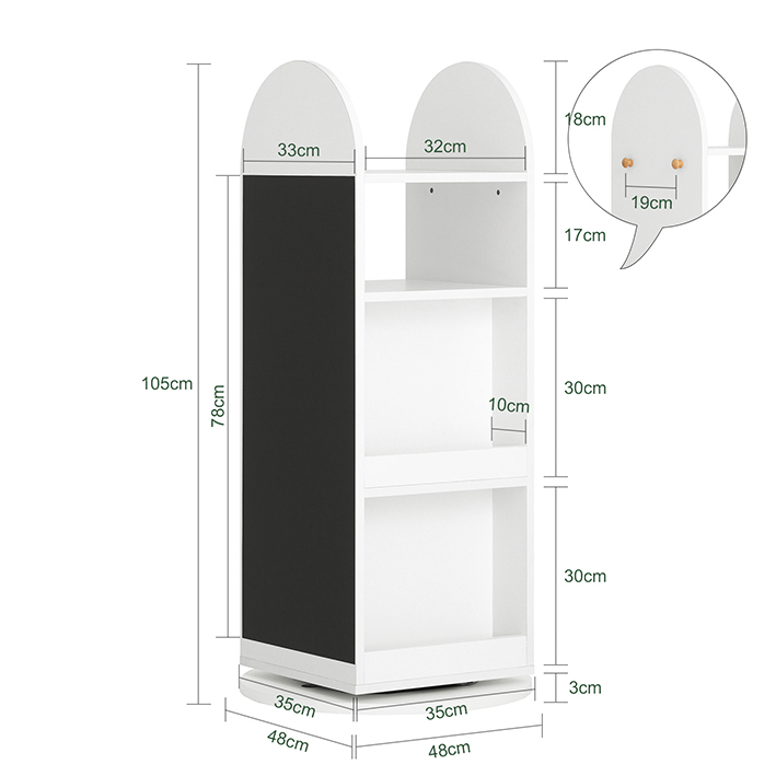 | Libellé | Étagère à Livres et Jouets, Bibliothèque Rotative à 360 – Blanc, 48 x 48 x 105 cm KMB64-W |